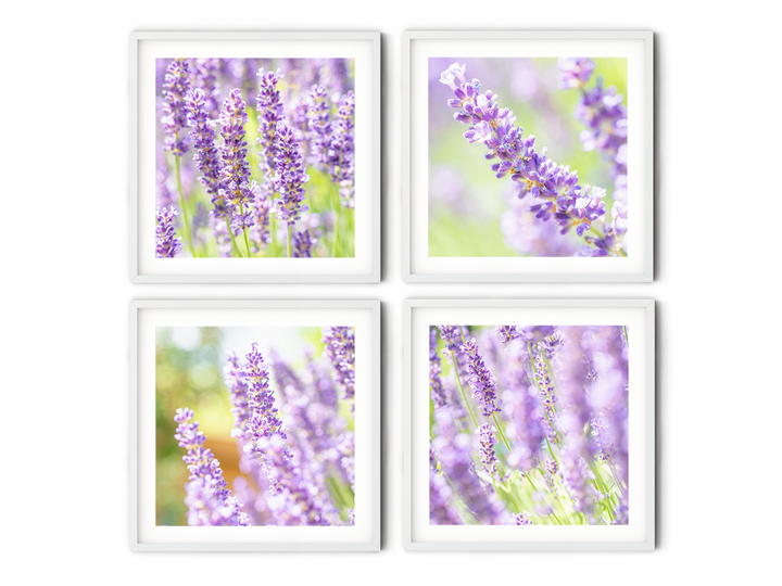 Elevate your home with the timeless elegance of this floral print set of purple lavender fields. Capturing the essence of blooming lavender in the picturesque French countryside, this set of four square prints brings the charm of the Provence to your decor. Each image exudes tranquility and rustic beauty, making it perfect for enhancing your French country-inspired home. This gallery wall set will infuse a sense of serenity and sophistication into any room, creating a delightful atmosphere that resonates with the allure of lavender fields in full bloom.