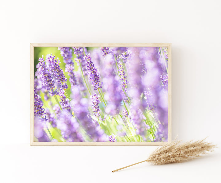 Elevate your home decor with this stunning fine art photography print featuring the delicate allure of purple lavender. Capturing the timeless elegance of this fragrant bloom, this botanical print evokes the tranquility of a Provencal lavender field, making it the perfect addition to your French country-inspired home. Its rich hues and intricate details add a touch of rustic charm and serenity, creating a visual masterpiece that will infuse your surroundings with a sense of countryside romance. Immerse yourself in the beauty of nature every day with this stunning piece of art.