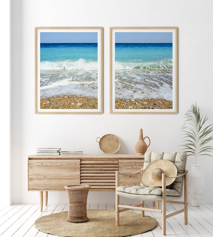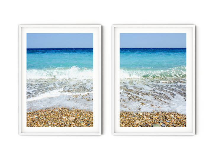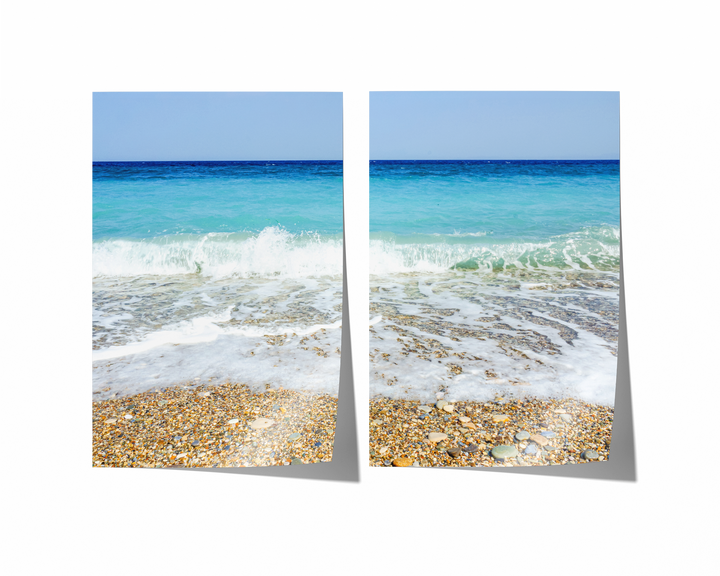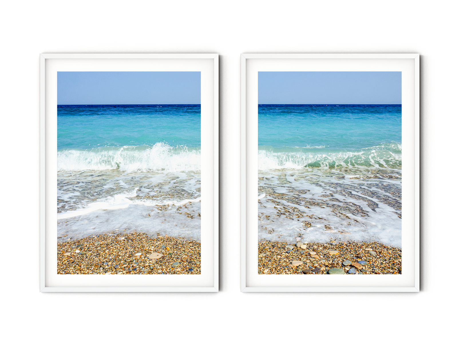 Versetze dich mit diesem faszinierenden Fine Art Print Set in den idyllischen griechischen Sommer. Spüre den warmen Sand zwischen deinen Zehen, während das endlose türkisfarbene Meer in ein tiefes, beruhigendes Blau übergeht und seine Wellen sanft das Ufer streicheln. Dieses zweiteilige Küstenlandschaftsdruckset strahlt eine Aura grenzenloser Freiheit und unbeschwerter Glückseligkeit aus. Egal, ob du ein Strandliebhaber bist oder das perfekte Geschenk für jemanden suchen, dieses zweiteilige Druckset verkörpert die Essenz der Ruhe am Meer und bringt den Zauber der griechischen Küste direkt zu dir nach Hause.