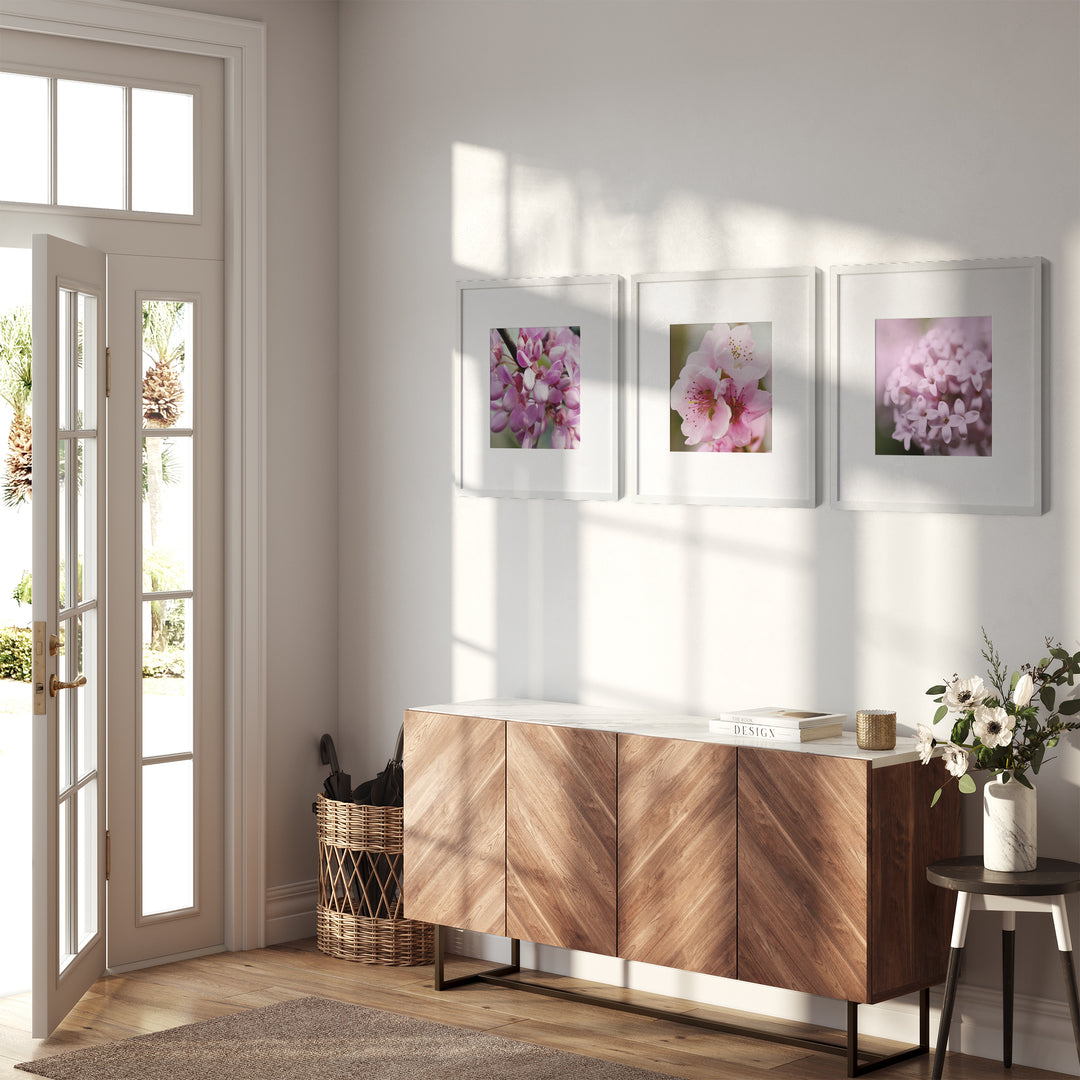 Erwecke deinen Raum mit der lebendigen Schönheit des Frühlings mit diesem Set aus 3 quadratischen Fine Art Fotodrucken. Jeder Druck bringt den zarten Reiz rosafarbener Frühlingsblumen mit aufwendigen Details zur Geltung und bringt die Schönheit der Saison in dein Zuhause. Diese faszinierenden Bilder sind die perfekte Ergänzung für deine florale Bilderwand und verleihen ihr einen frischen und zeitlosen Charme. Egal, ob du ein Naturliebhaber oder ein begeisterter Gärtner bist, diese Drucke fangen die vergängliche Schönheit des Frühlings ein und ermöglichen es dir, seine Schönheit das ganze Jahr über zu genießen. Erhelle deinen Wohnraum mit der Anmut und Eleganz dieser Frühlingsblüten und lassedich jeden Tag aufs Neue von ihrem Charme inspirieren.