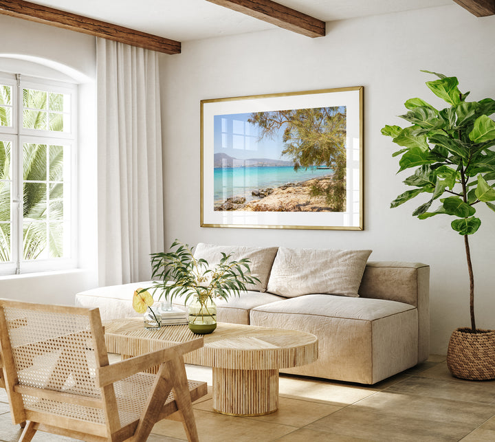 Tauche mit diesem faszinierenden Fine Art Poster in den bezaubernden Reiz der griechischen Inseln ein. Das leuchtende Blau der Ägäis und das üppige Grün der umgebenden mediterranen Landschaft verschmelzen zu einem atemberaubenden Tanz und entführen dich  an die sonnenverwöhnten Küsten von Paros. Lasse deiner Fantasie freien Lauf, während du dir vorstellst, in diesem Küstenparadies zu sein, wo die Wärme des griechischen Sommers jedes Pixel durchdringt. Werte dein Zuhause mit der Essenz Griechenlands auf und lasse dieses atemberaubenden Küstenposter zu einem täglichen Ausflug in die idyllische Schönheit der griechischen Küste werden.