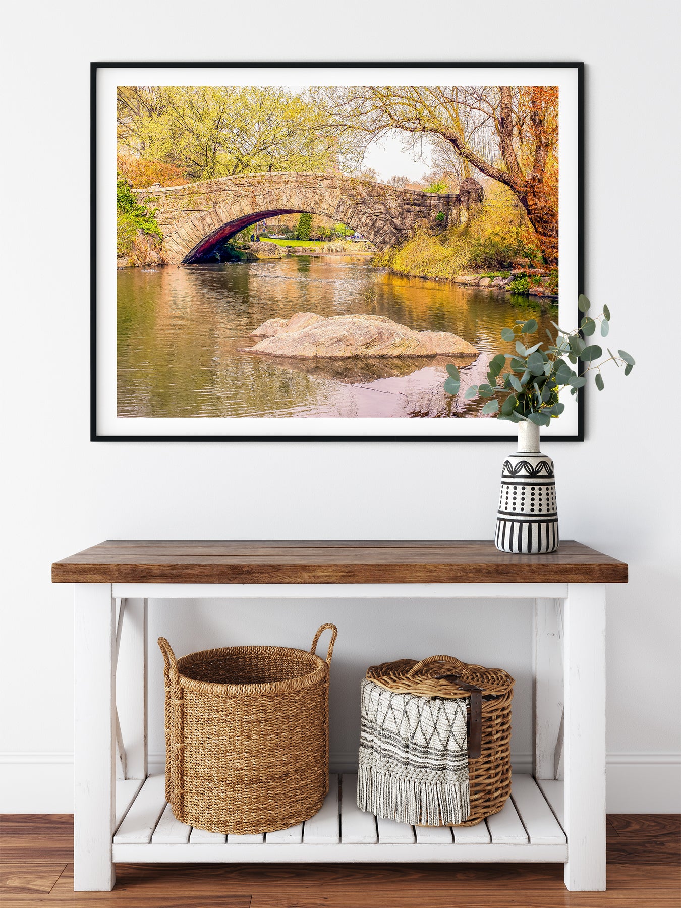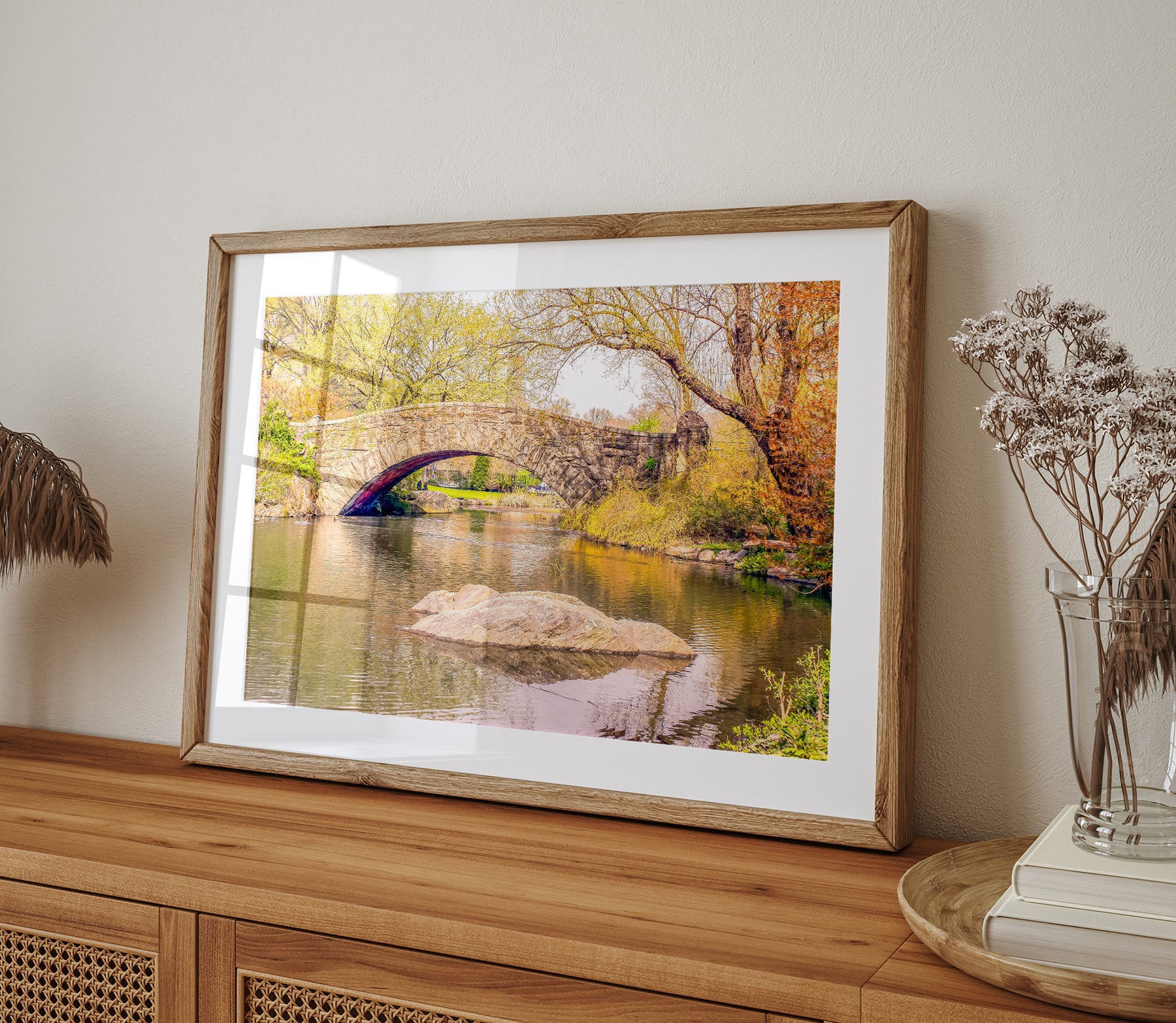 Fange den zeitlosen Reiz des New Yorker Central Parks mit diesem atemberaubenden Fine Art Fotodruck ein. Die ikonische Gapstow Bridge, die sich anmutig über einen ruhigen Teich wölbt, ist ein Symbol für urbane Eleganz und natürliche Schönheit. Egal, ob du ein New Yorker oder ein Liebhaber der Stadt bist, die niemals schläft, dieser Druck entführt dich in einen Moment der Gelassenheit inmitten der geschäftigen Metropole. Sein klassischer Charme und die edle Komposition machen diesen Druck zu einer perfekten Ergänzung deiner Einrichtung und verleihen deinem Raum einen Hauch des eleganten Charmes der Stadt. Hole dir das Herz von New York City mit diesem faszinierenden Druck nach Hause!