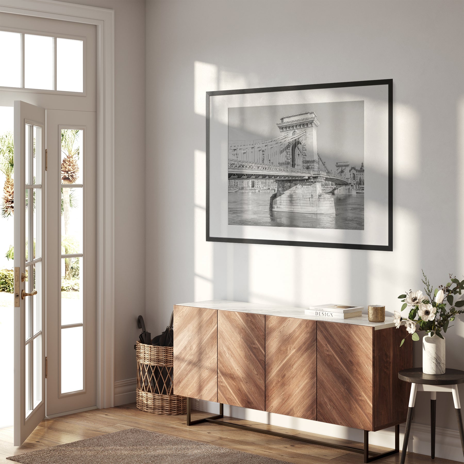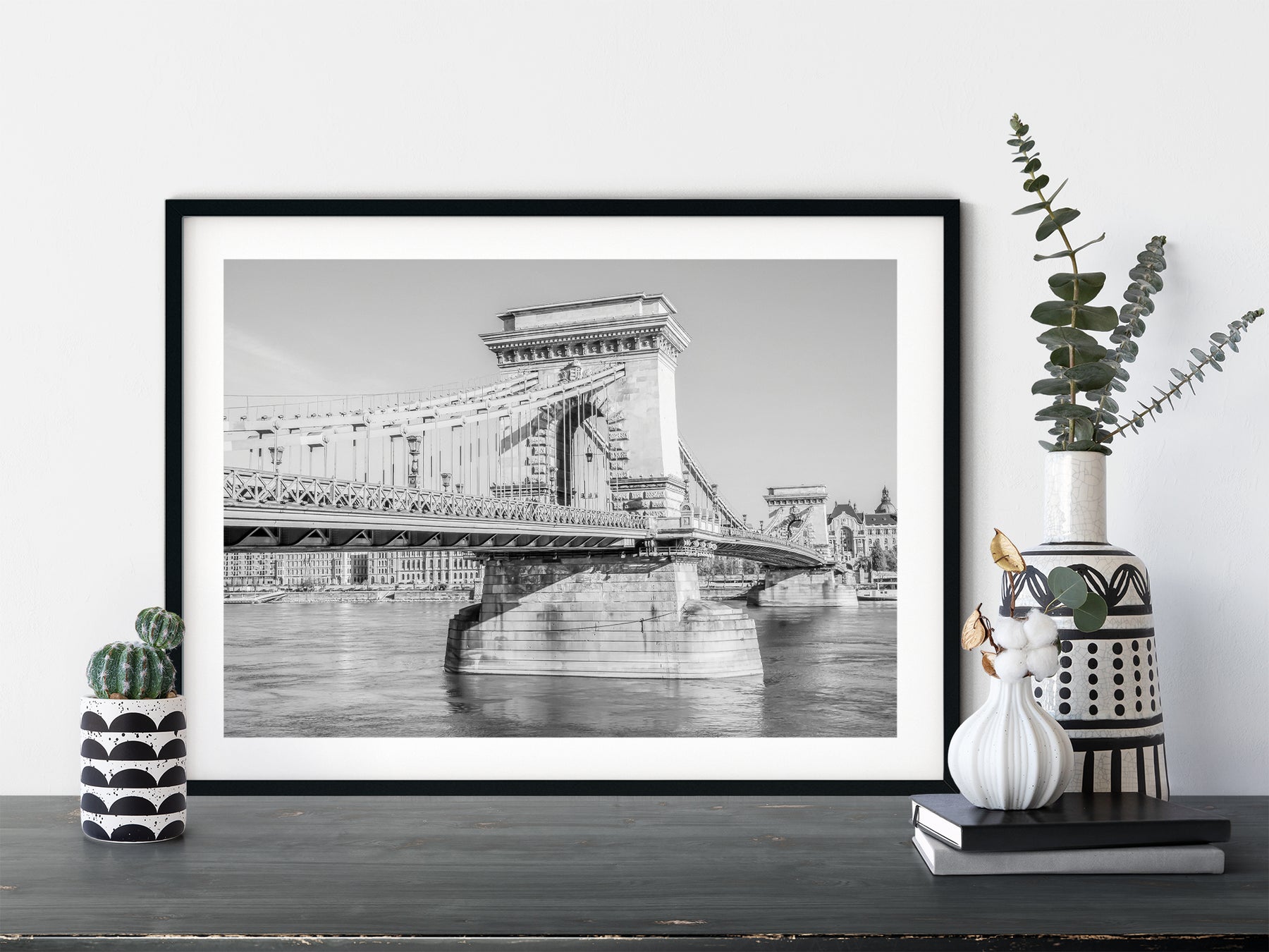 Dieser wunderschöne schwarzweiße Fine Art Print fängt den zeitlosen Reiz von Budapest, Ungarn, ein. Die ikonische Kettenbrücke überspannt anmutig die Donau und verbindet die historischen Viertel der Stadt. Seine architektonische Pracht und faszinierende Schönheit werden in diesem atemberaubenden Reisedruck wunderschön verewigt. Egal, ob du du ihren Weg schon einmal gekreuzt habst oder die reiche Geschichte Budapests erkunden möchtest, dieser Druck ruft ein Gefühl von Staunen und Nostalgie hervor. Werte deine Einrichtung mit der Eleganz der ungarischen Hauptstadt durch diesen fesselnden Kunstdruck auf. Lasse den zeitlosen Charme der Kettenbrücke deine Wände schmücken und dich an den anhaltenden Zauber der Stadt erinnern.
