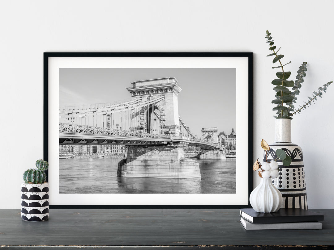 Kettenbrücke von Budapest | Schwarzweißer Fine Art Poster Print