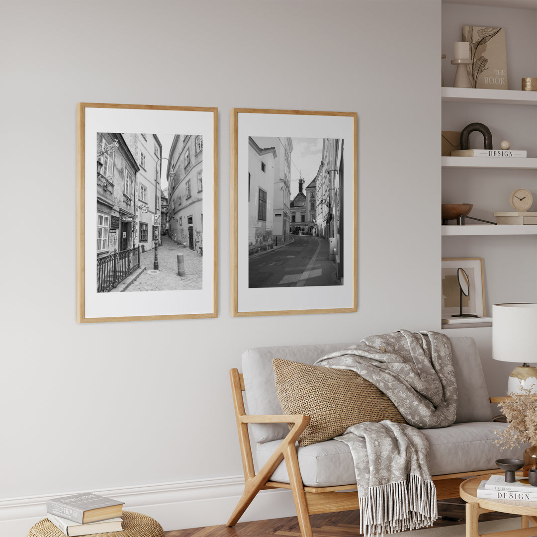 Straßen von Wien Bilderwand | Schwarzweißes Fine Art Poster Print Set