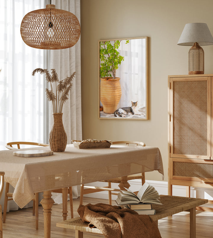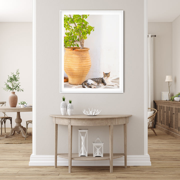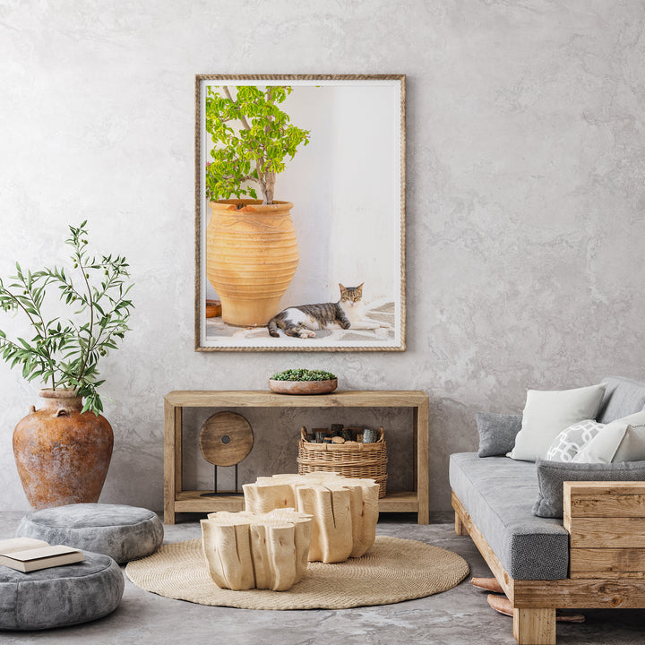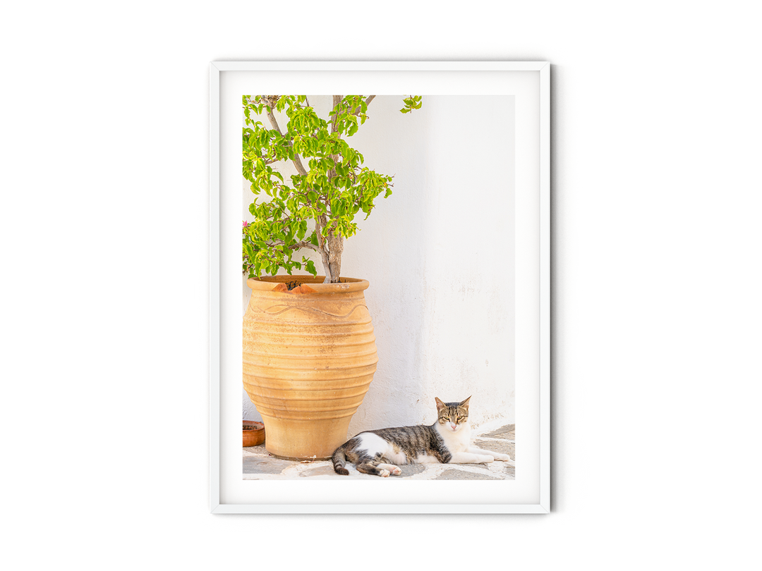 Dieser bezaubernde Fotodruck einer Katze, die neben einem Tontopf ruht, fängt die friedliche Atmosphäre eines kleinen Dorfes auf der griechischen Insel Paros ein. Die warmen Farbtöne und die schöne Komposition des Drucks schaffen eine ruhige Atmosphäre und machen ihn zu einer perfekten Ergänzung für deine Wanddekoration. Egal, ob du ein Katzenliebhaber oder einfach ein Fan des griechischen Insellebens bist, dieses Wandbild bringt mit Sicherheit ein Gefühl der Ruhe in dein Zuhause. Verleihe jedem Raum mit diesem atemberaubenden Kunstdruck einen Hauch von mediterranem Stil und bringe ein Stück Griechenland in dein Zuhause.