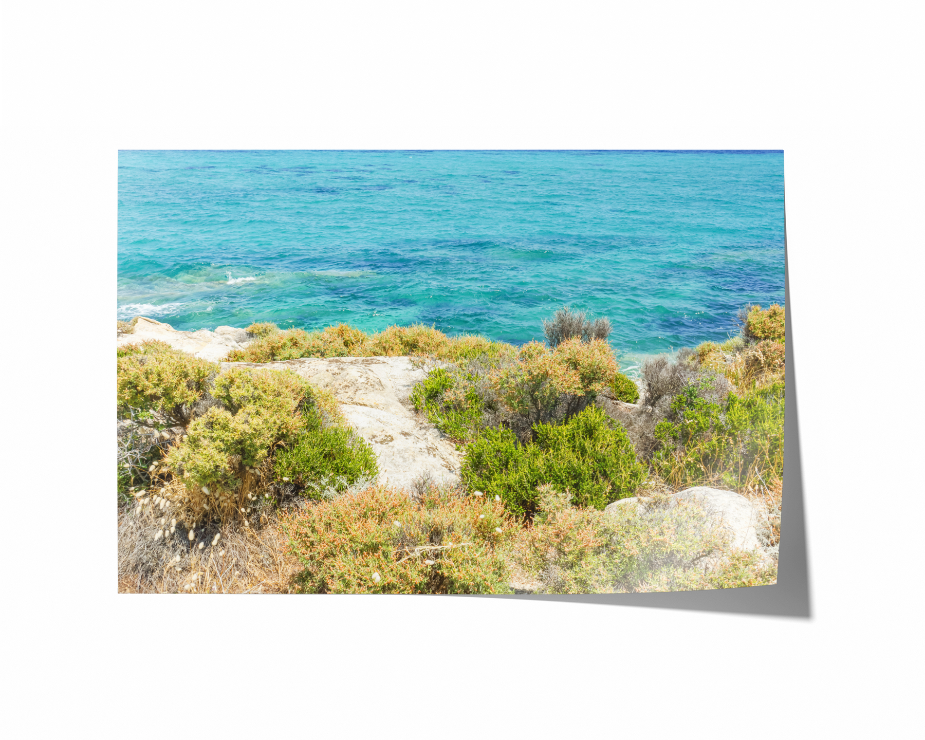 Lasse die Erinnerungen an deinen letzten Griechenlandurlaub mit diesem faszinierenden Landschaftsfotodruck noch einmal aufleben. Die raue Schönheit der Mittelmeerküste und das faszinierende türkisfarbene Meer werden in diesem Bild gekonnt eingefangen. Perfekt sowohl für Reiseliebhaber als auch für diejenigen, die zu Hause den Charme der Küste suchen, lädt dieser Druck die atemberaubende Schönheit der mediterranen Landschaft in dein Zuhause ein. Verwandle deine Wände mit dem Charme dieser Wandkunst im Küstenstil und lasse den Zauber Griechenlands jede Ecke deines Zuhauses erfüllen!