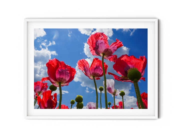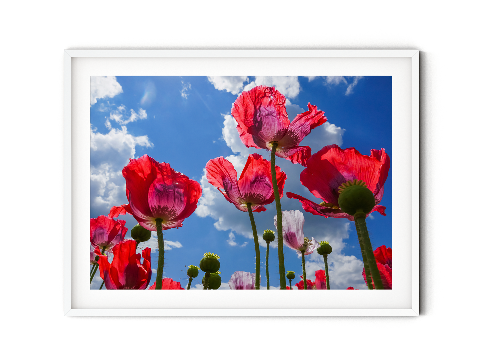 Dieser atemberaubende Fotodruck fängt die lebendige Schönheit roter Mohnblumen vor einem strahlend blauen Himmel ein und ist damit die perfekte Ergänzung für jede moderne Landhausdeko. Die leuchtend roten Blütenblätter der Mohnblumen heben sich vom blauen Hintergrund ab und schaffen ein Gefühl der Ruhe und Gelassenheit, das die gemütliche und einladende Atmosphäre eines Hauses im Landhausstil perfekt ergänzt. Egal, ob du eine ruhige und entspannende Atmosphäre in deinem Wohnzimmer, Schlafzimmer oder deinem Homeoffice schaffen möchtest, dieser Druck bringt die Schönheit der Natur in dein Zuhause!