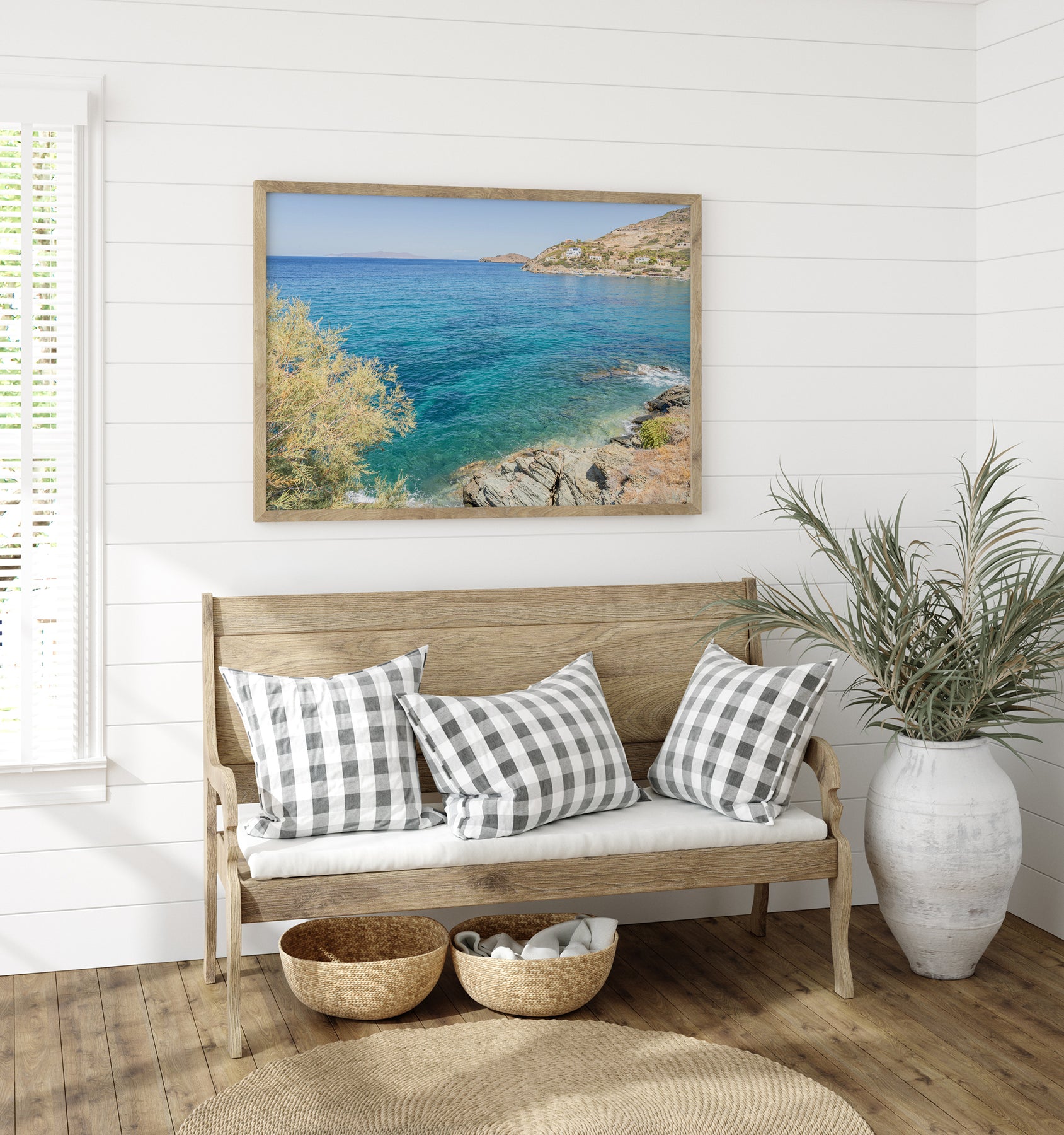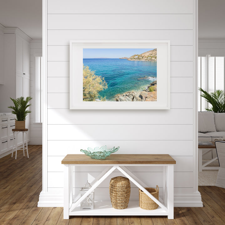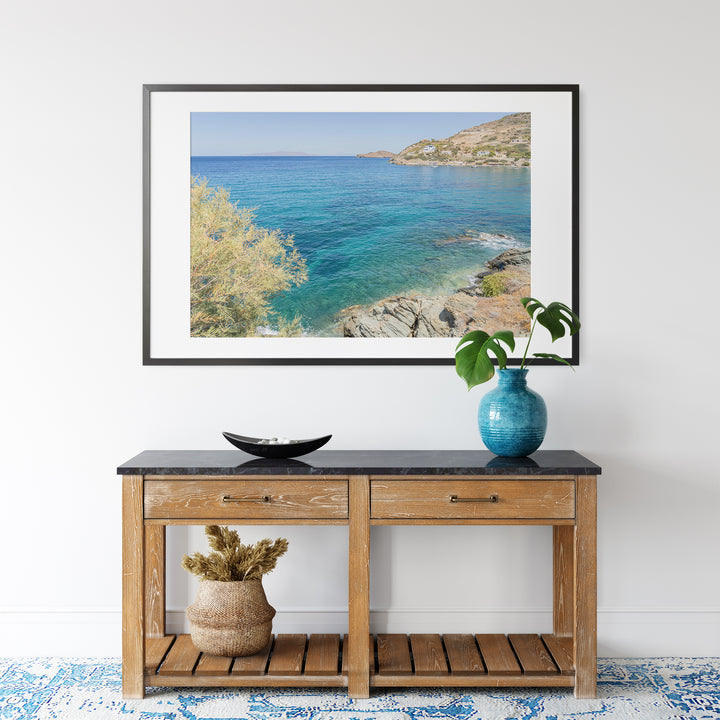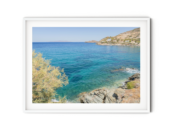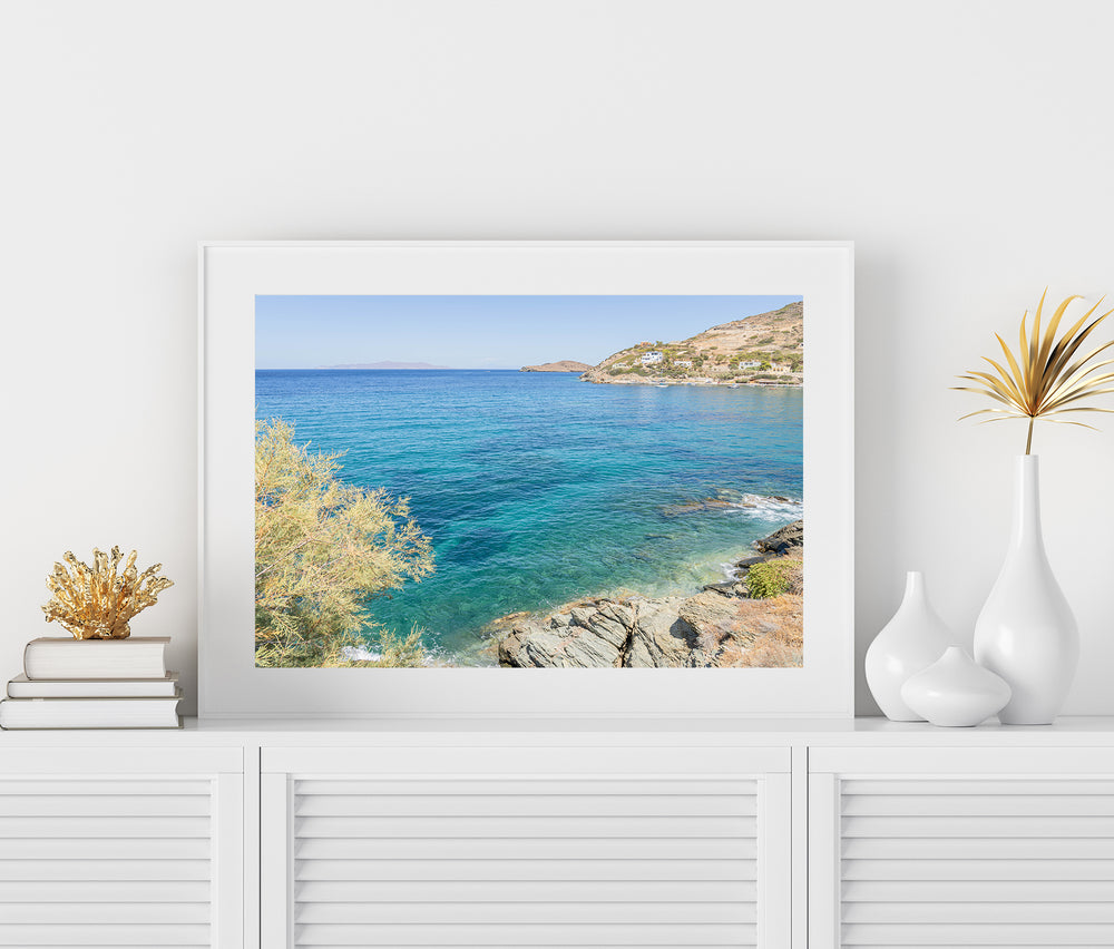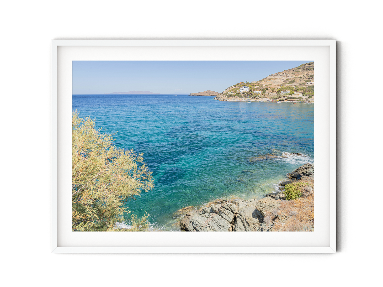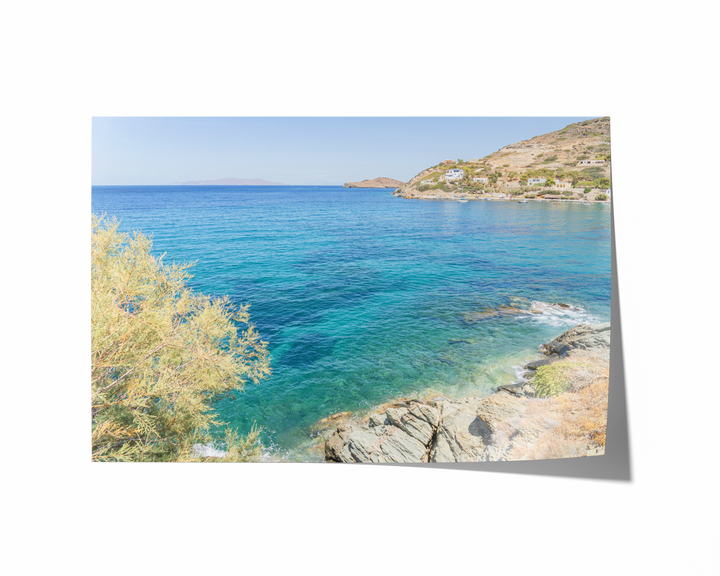 Versetze dich mit diesem Kunstdruck an die idyllischen Küsten der Insel Syros. Dieser Druck zeigt die atemberaubende Küstenlinie vor dem Hintergrund des türkisblauen Mittelmeers und üppiger Vegetation und strahlt Küstencharme und Ruhe aus. Perfekt für Küstenwandkunst oder zur Verschönerung eines griechisch inspirierten Strandhausdekors, bringt er die heitere Schönheit des Lebens am Meer in dein Zuhause. Tauche mit diesem Kunstdruck in die beruhigende Magie des Küstenlebens ein.