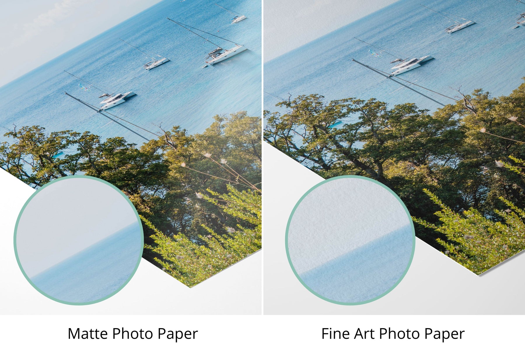 Die Fotodrucke in Premium-Qualität werden mit hochwertigen Archivtinten auf feinstem Fotopapier gedruckt. Du erhältst einen atemberaubenden Druck von unübertroffener Qualität und außergewöhnlicher Langlebigkeit, der dich und deine Wände ein Leben lang glücklich machen wird. Du hast die Wahl zwischen klassischem mattem Fotopapier mit 234 g/m² und luxuriösem Fine Art Fotopapier mit 308 g/m².