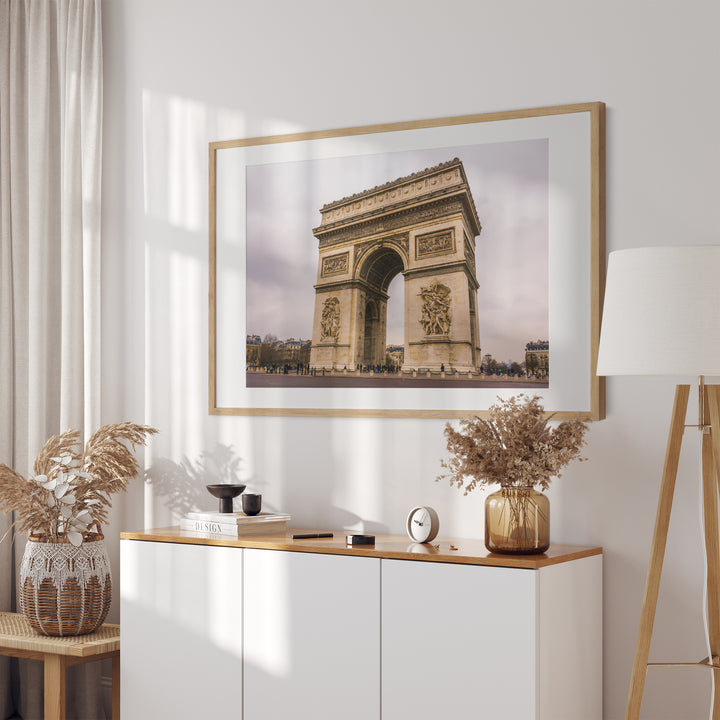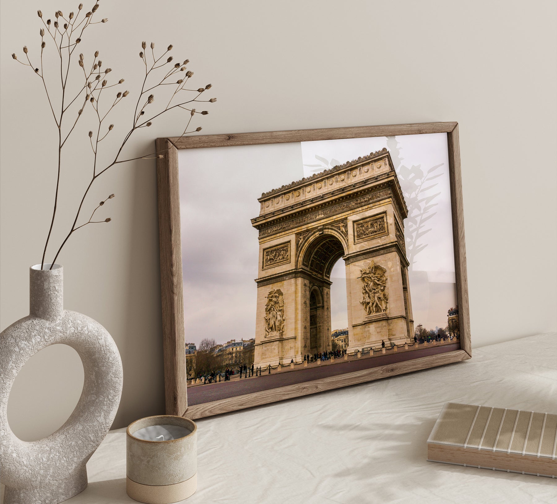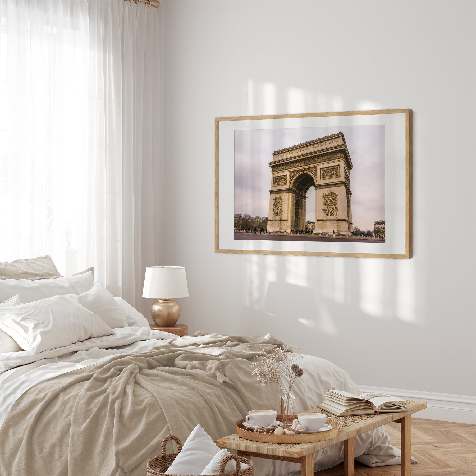 Add classic French charm to your home decor with this fine art photography print of the Arc de Triomphe in Paris. Its elegant design will bring timeless sophistication Parisian vibes to any living room, bedroom, dining room, home office or college dorm, and its neutral beige color palette will blend seamlessly with your existing wall art. Enjoy a classic piece of European architecture in your home with this fine art print.