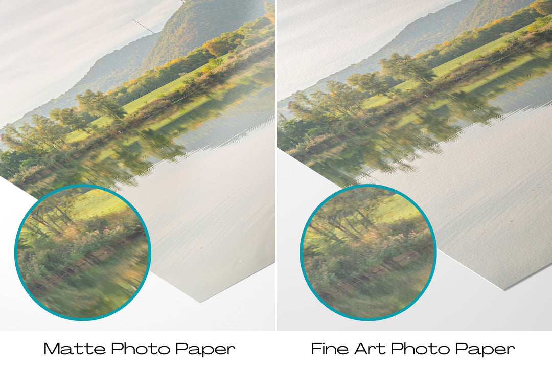 Fine art photo paper prints are printed on Hahnemühle Photo Rag® 308 fine art photo paper (308 gsm). The premium quality fine art prints are made by hand with archival pigmented inks. They impress with over 100 years of color brilliance. The Hahnemühle Photo Rag® 308 is a superior quality branded fine art paper made of 100% cotton with a smooth matte finish that emphasizes every detail.