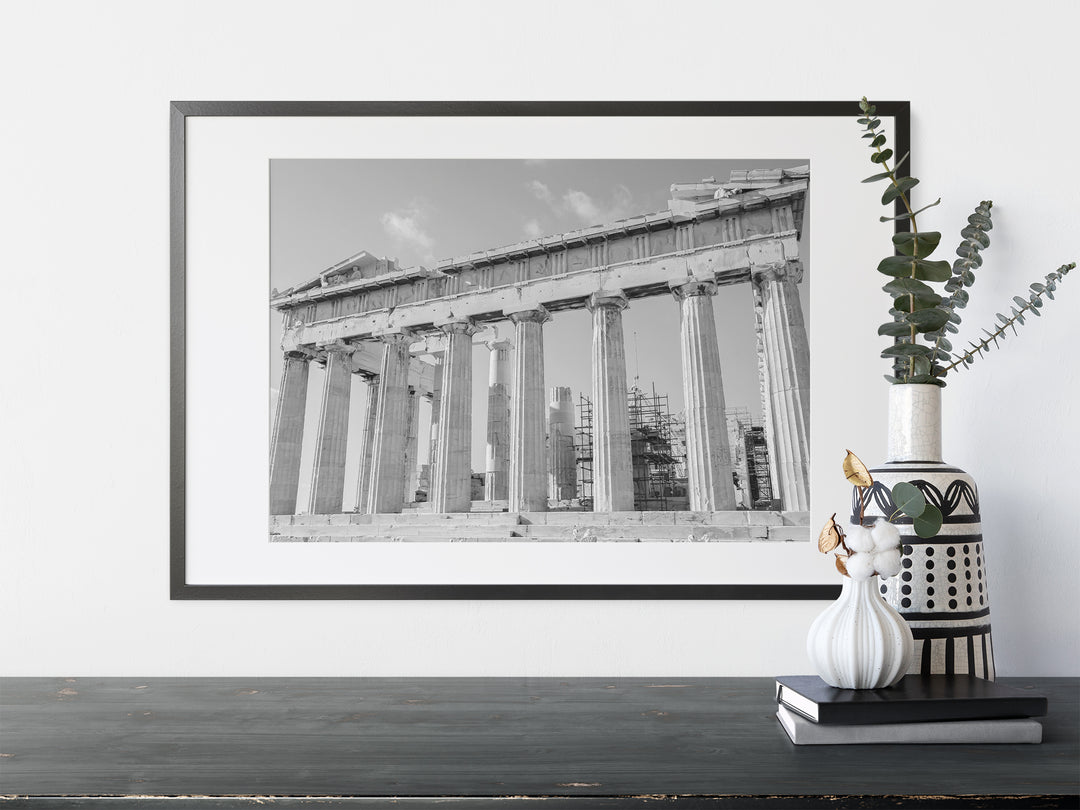 Elevate your home decor with the timeless beauty of this black & white photography print of the Parthenon of the Acropolis in Athens. This stunning print captures the intricate details and grandeur of one of the most iconic landmarks of ancient Greece. The Parthenon was dedicated to the goddess Athena and served as a symbol of Athenian power and culture. Today, it stands as a testament to the ingenuity and skill of the ancient Greeks, and is recognized as a UNESCO World Heritage Site. Whether displayed as part of a gallery wall or as a standalone piece, this photography print is a must-have for art enthusiasts, history buffs, and world travelers alike.