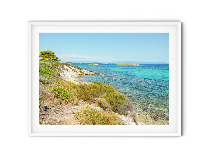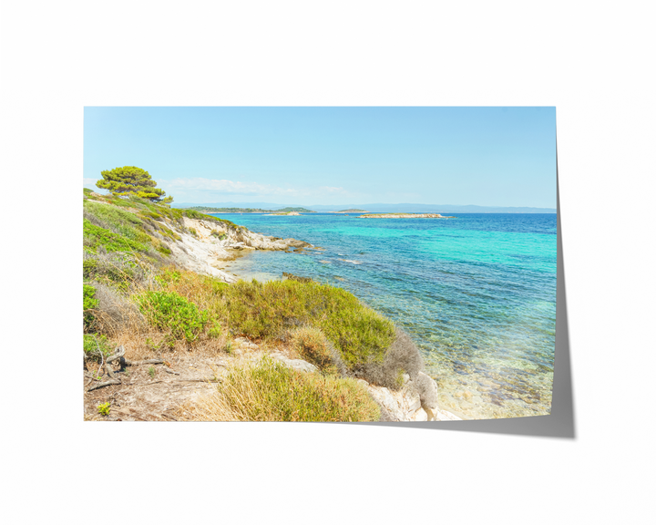 This stunning coastal photography print shows the beauty of the Aegean seascape. This breathtaking fine art print captures the endless the turquoise sea, framed by the rugged cliffs and delicate wildflowers that line the coast. Whether you've recently returned from a vacation in Greece or simply want to experience its natural beauty, this ocean photography print will transport you to a world of tranquility and beauty. This print makes the perfect addition to any beach house or coastal-inspired decor. Experience the magic of Greece's coastal landscape with this timeless piece that will inspire you for years to come.