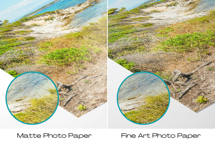 Fine art photo paper prints are printed on Hahnemühle Photo Rag® 308 fine art photo paper (308 gsm). The premium quality fine art prints are made by hand with archival pigmented inks. They impress with over 100 years of color brilliance. The Hahnemühle Photo Rag® 308 is a superior quality branded fine art paper made of 100% cotton with a smooth matte finish that emphasizes every detail.