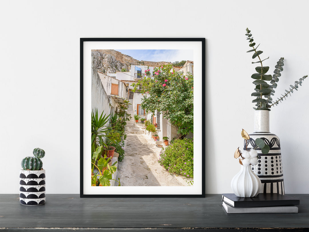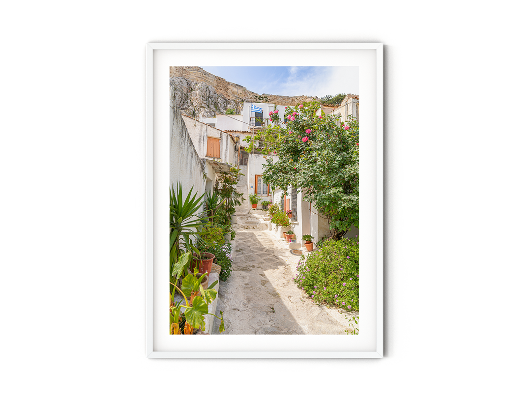 Enjoy the hidden treasures of Athens with this beautiful fine art photography print of an alley in the Anafiotika district of Athens. Wander through the narrow cobblestone pathways, adorned with vibrant flowers and traditional Greek architecture, as the unique atmosphere of the city comes alive before your eyes. This print captures the charm and authenticity of Anafiotika, transporting you to a picturesque haven nestled within the bustling city. Whether you're a lover of travel, a fan of Greek culture, or simply seeking to add a touch of Mediterranean style to your space, this print is a perfect choice.
