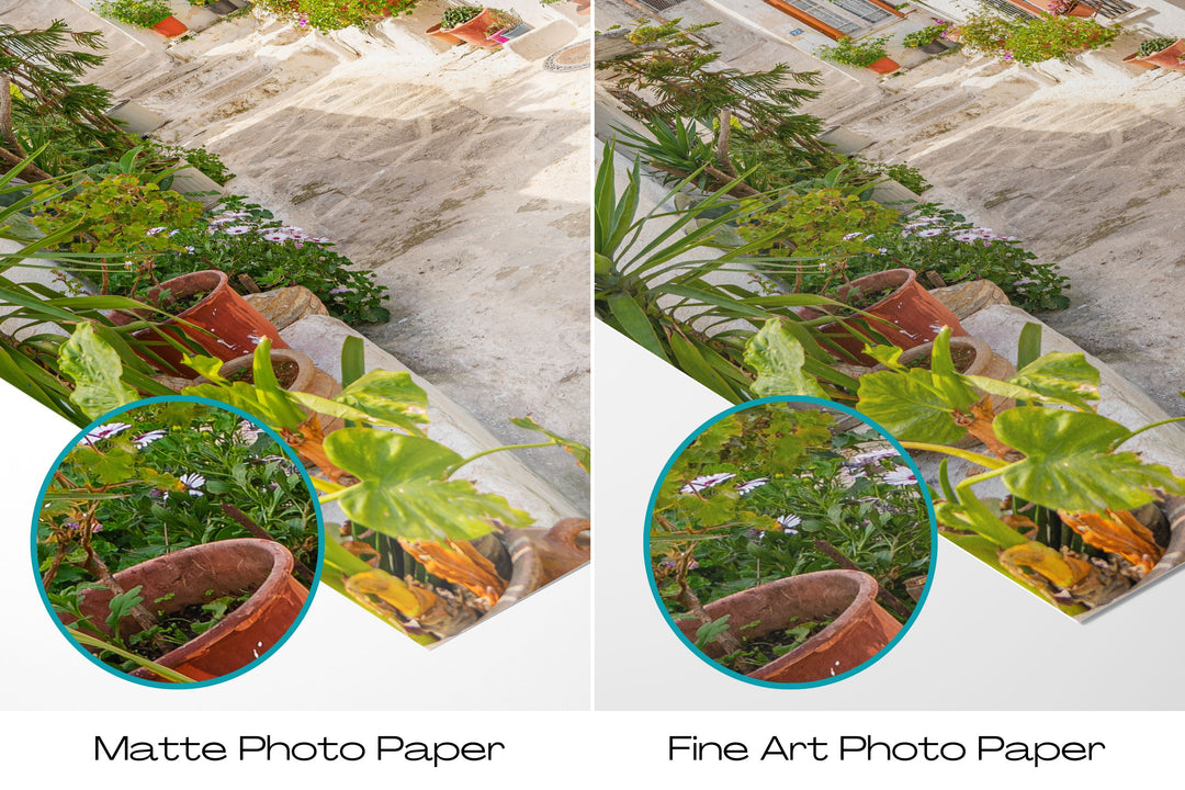 Fine art photo paper prints are printed on Hahnemühle Photo Rag® 308 fine art photo paper (308 gsm). The premium quality fine art prints are made by hand with archival pigmented inks. They impress with over 100 years of color brilliance. The Hahnemühle Photo Rag® 308 is a superior quality branded fine art paper made of 100% cotton with a smooth matte finish that emphasizes every detail.
