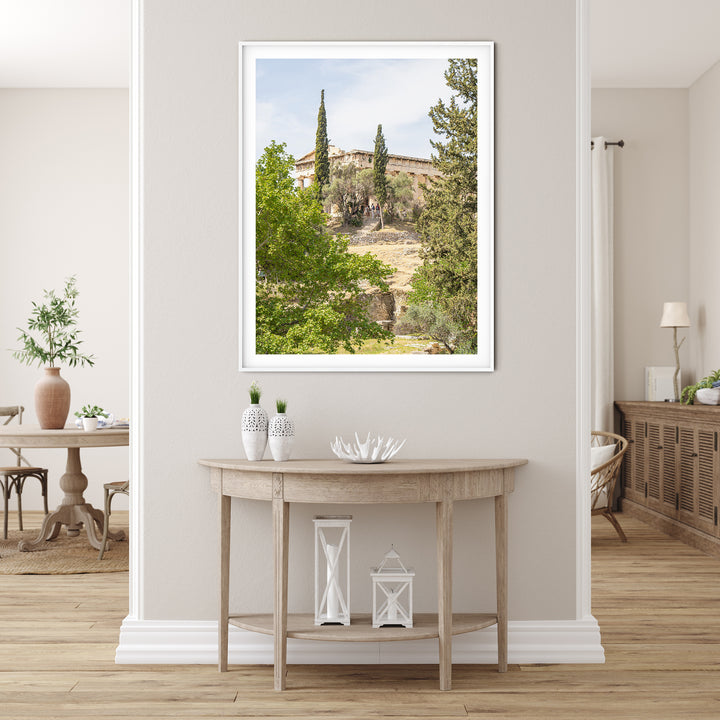 Enjoy the beauty of Athens with this fine art photography print of the Parthenon of the Acropolis surrounded by lush greenery, captured from the charming streets of the Plaka. This print brings the magnificence of this ancient Greek ruins right into your home, adding a touch of history and fascination to your Greek home decor. Whether you're a lover of travel, architecture, or simply drawn to the beauty of Greece, this photography print is the perfect addition to your home decor, bringing the magic of Athens into your living space.