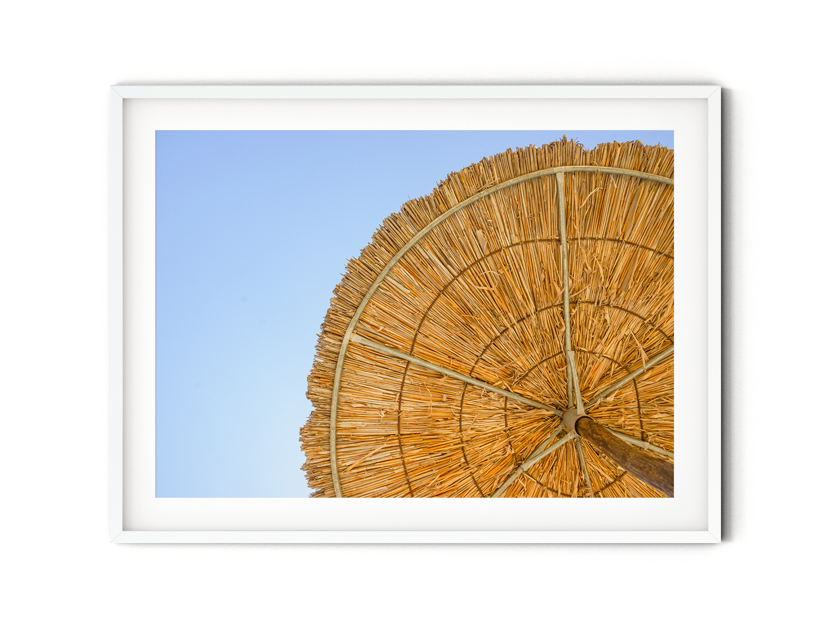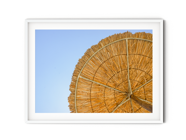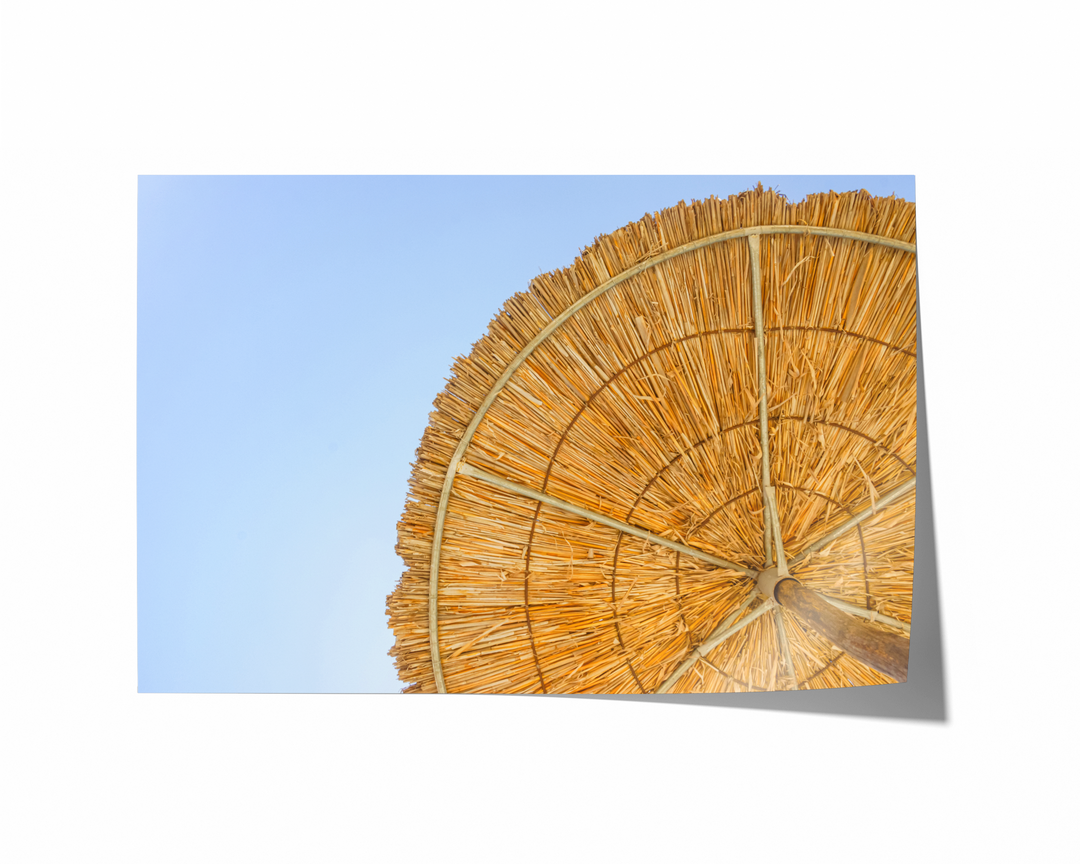 This gorgeous photography print of a straw beach umbrella standing tall and proud under a bright blue summer sky will transport yourto a sunny day on the beach. This idyllic coastal scene will sweep you away to a world of relaxation and tranquility. Perfect for any modern beach themed decor, this photography print will invite you to escape every day life and take a moment to breathe in the ocean air. Keep the spirit of summer alive all year long with this lovely print, and turn your home into a coastal paradise!