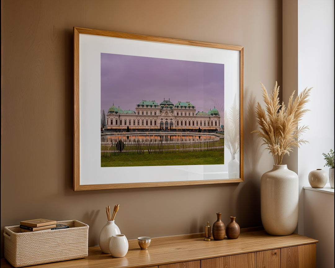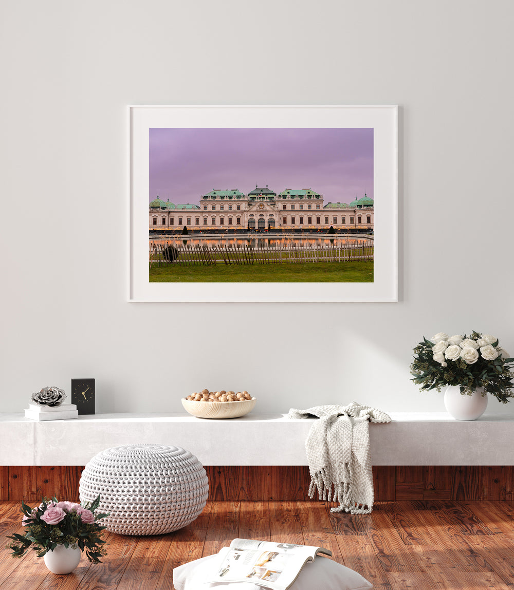 This fine art photography print captures the enchanting beauty of Belvedere Palace during the holiday season in Vienna. Set against a serene evening sky, the palace’s ornate architecture and iconic green domes are perfectly mirrored in the still waters of the reflecting pool, surrounded by soft Christmas lights. This elegant scene brings a sense of tranquility and festive wonder, making it a striking addition to your home decor or a thoughtful gift for admirers of European culture and history.