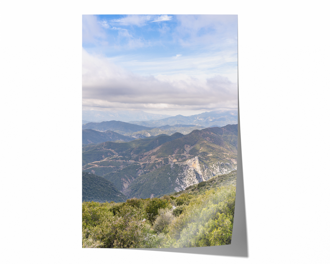 A stunning nature photography of the green Greek mountain scenery in the Epirus region. There is an airy atmosphere created by soft white clouds against a blue sky. Enjoy the stunning Greek mountain landscape from the comfort of your own home with this beautiful landscape wall art which will add a touch of elegance to your home decor. A beautiful landscape print like this would make a great addition to your living room decor as well as a perfect gift idea for anyone who loves the mountains.