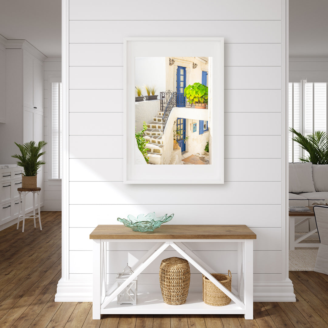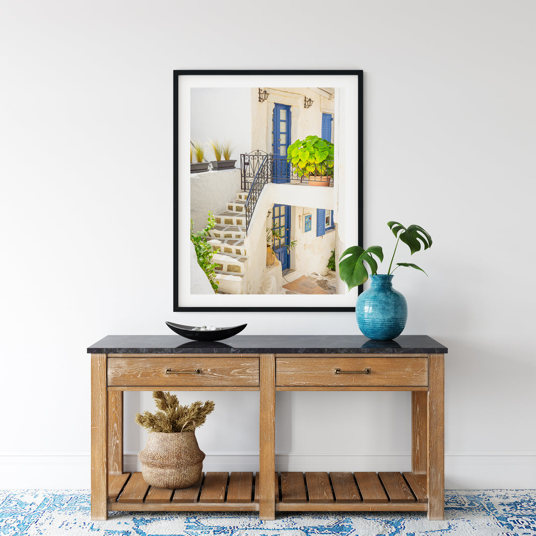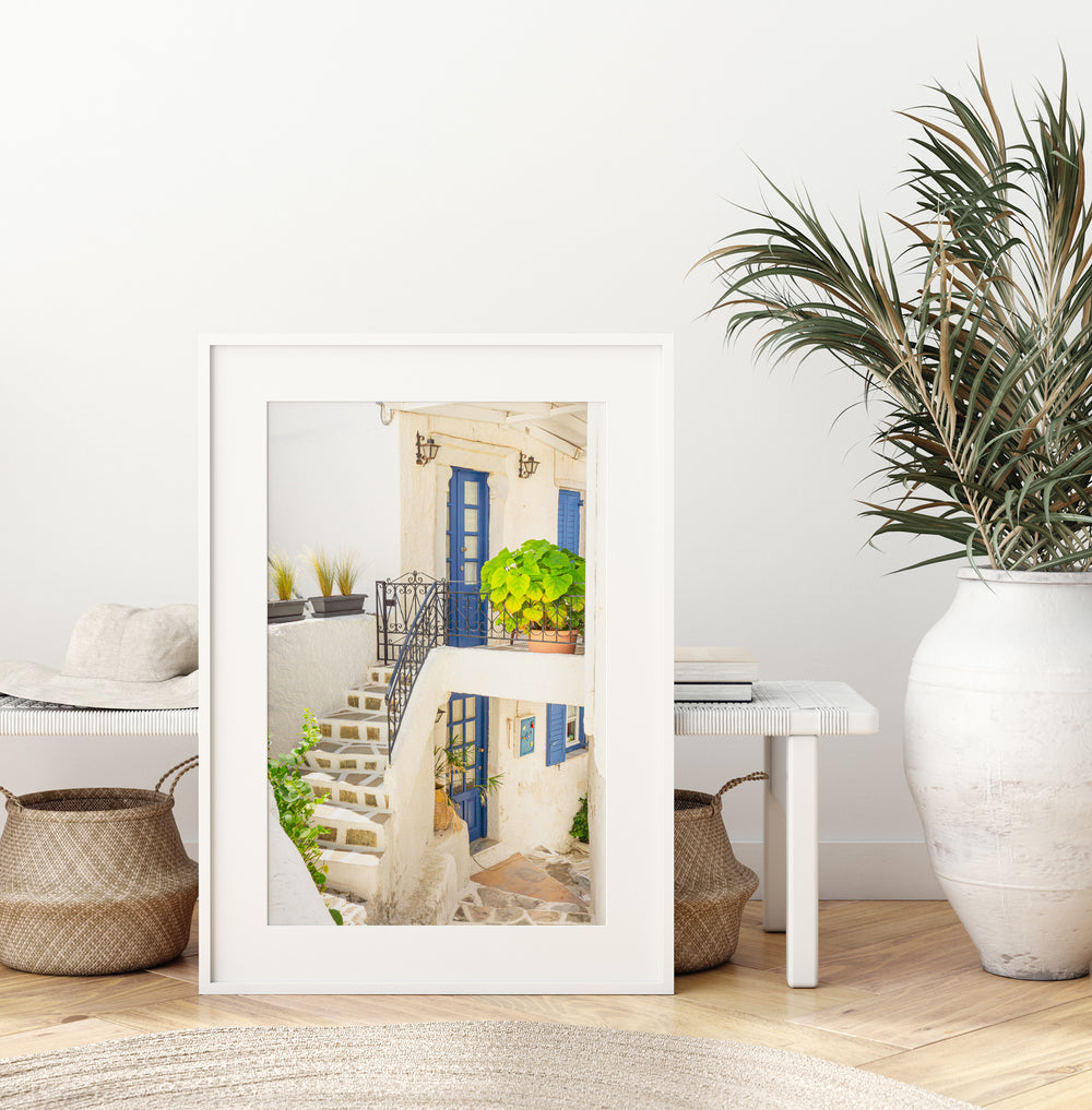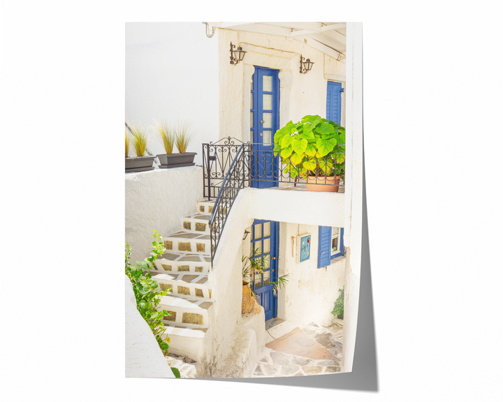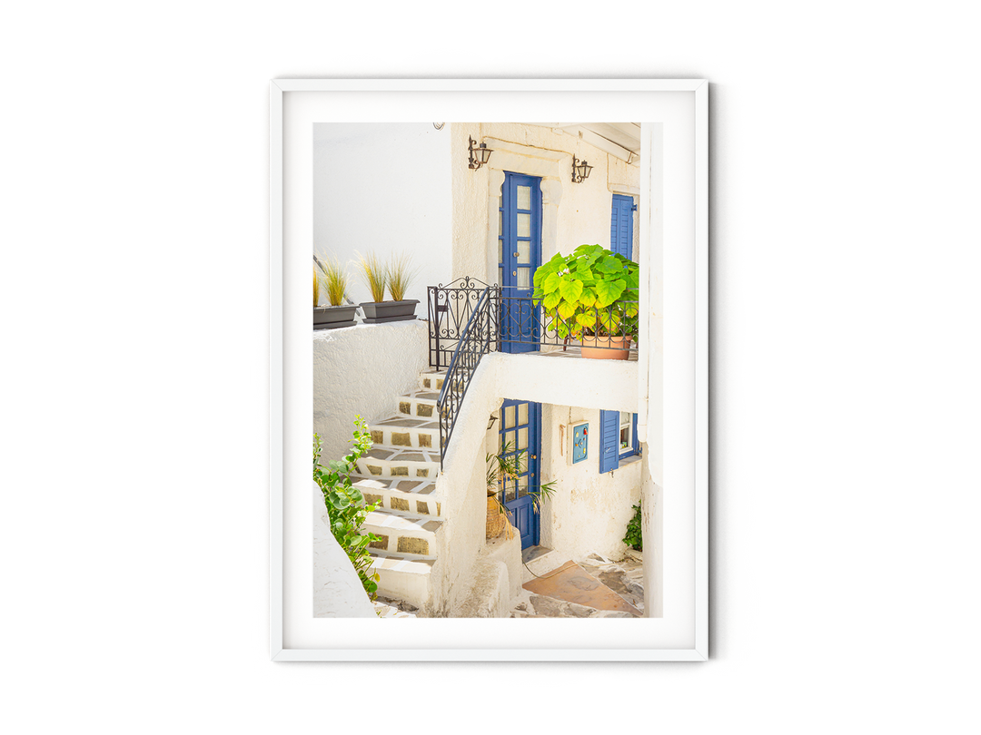 Escape to the idyllic Greek island of Paros with this enchanting fine art photography print. The image of a small white house adorned with vibrant blue doors and shutters perfectly encapsulates the quintessential beauty of the Cyclades. It's a timeless snapshot of Greek island life, where simplicity meets elegance. Whether you've explored Paros or dreamt of its picturesque landscapes, this print brings the island's essence right into your living space. The crisp white and striking blue create a soothing, coastal atmosphere, making it an ideal addition to any decor. Transport yourself to the tranquil streets of Paros every day with this fine art print, a reminder of the enduring allure of the Greek islands.