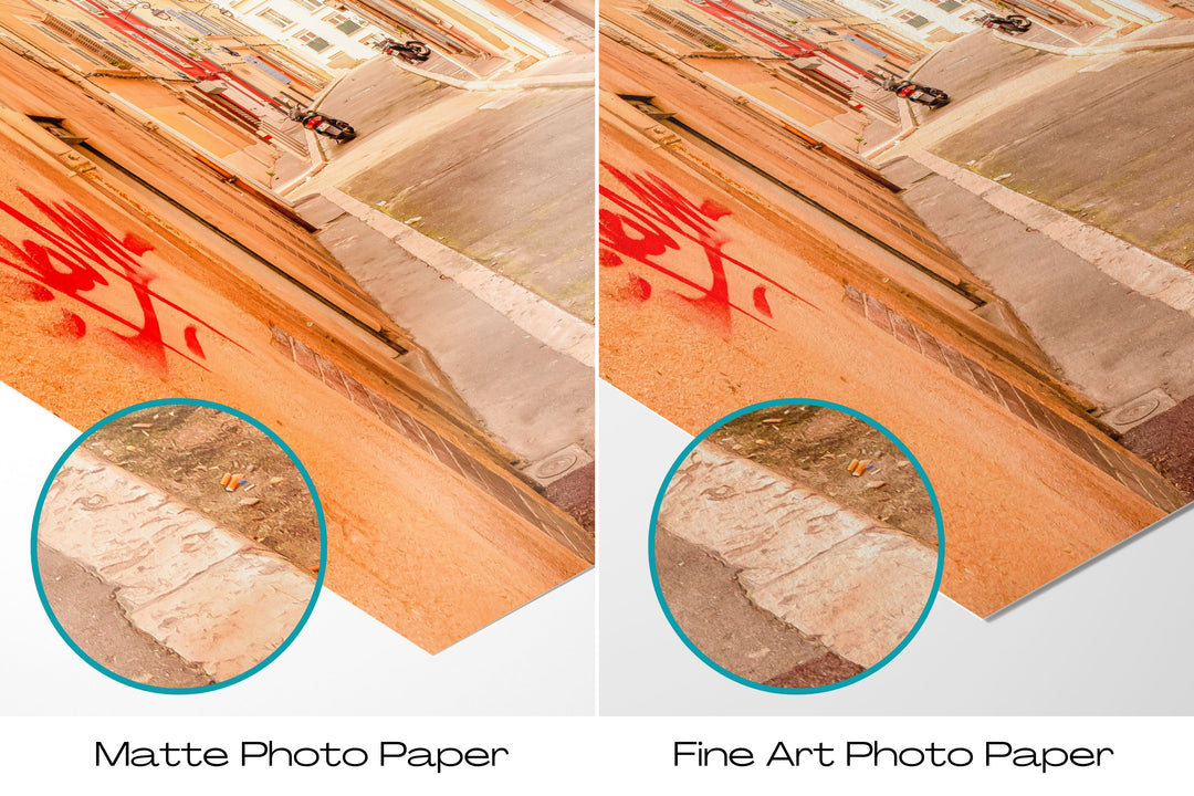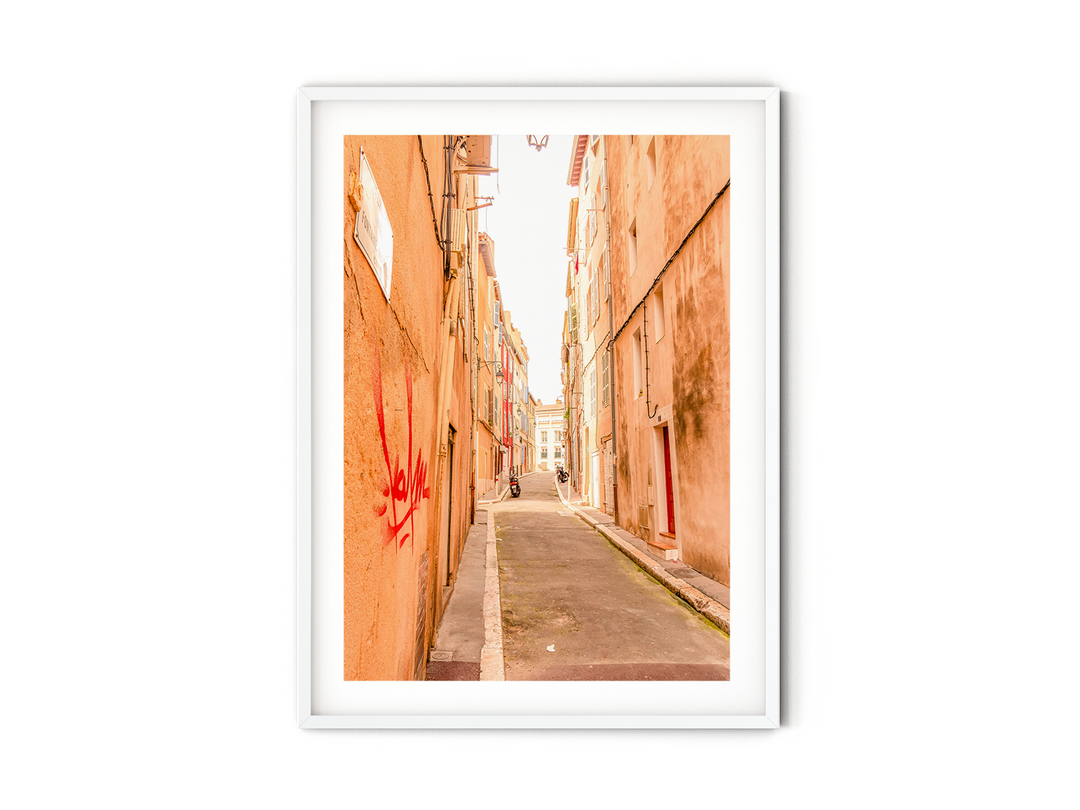 Discover the alluring ambiance of Marseille's old town through this captivating photography print, which transports you to the enchanting narrow streets that exude the city's inherent charm. Whether gracing your walls as rustic decor or exquisite artwork, this print infuses every room with the irresistible allure of Marseille. Journey through the Le Panier district, Marseille's historic heart, with this evocative travel poster, and let the essence of Provence adorn your space with a touch of southern elegance, capturing the city's unique character and heritage in a single, captivating frame.