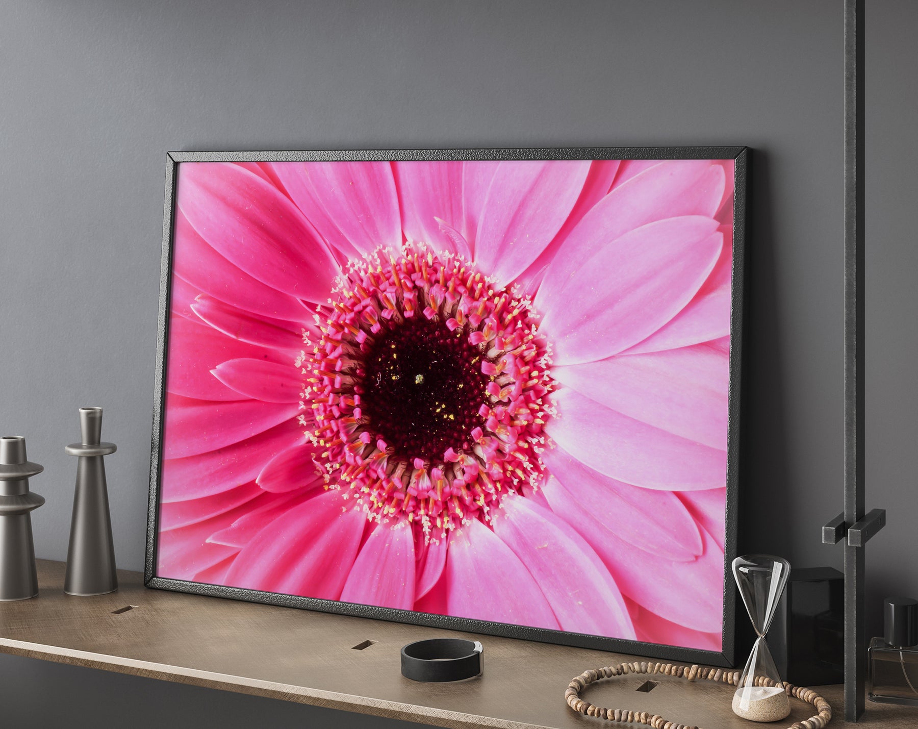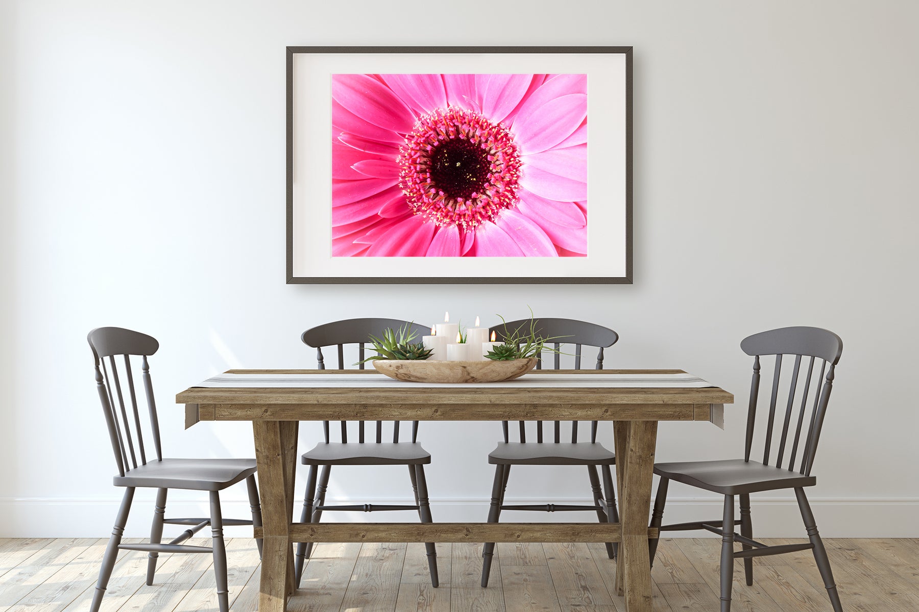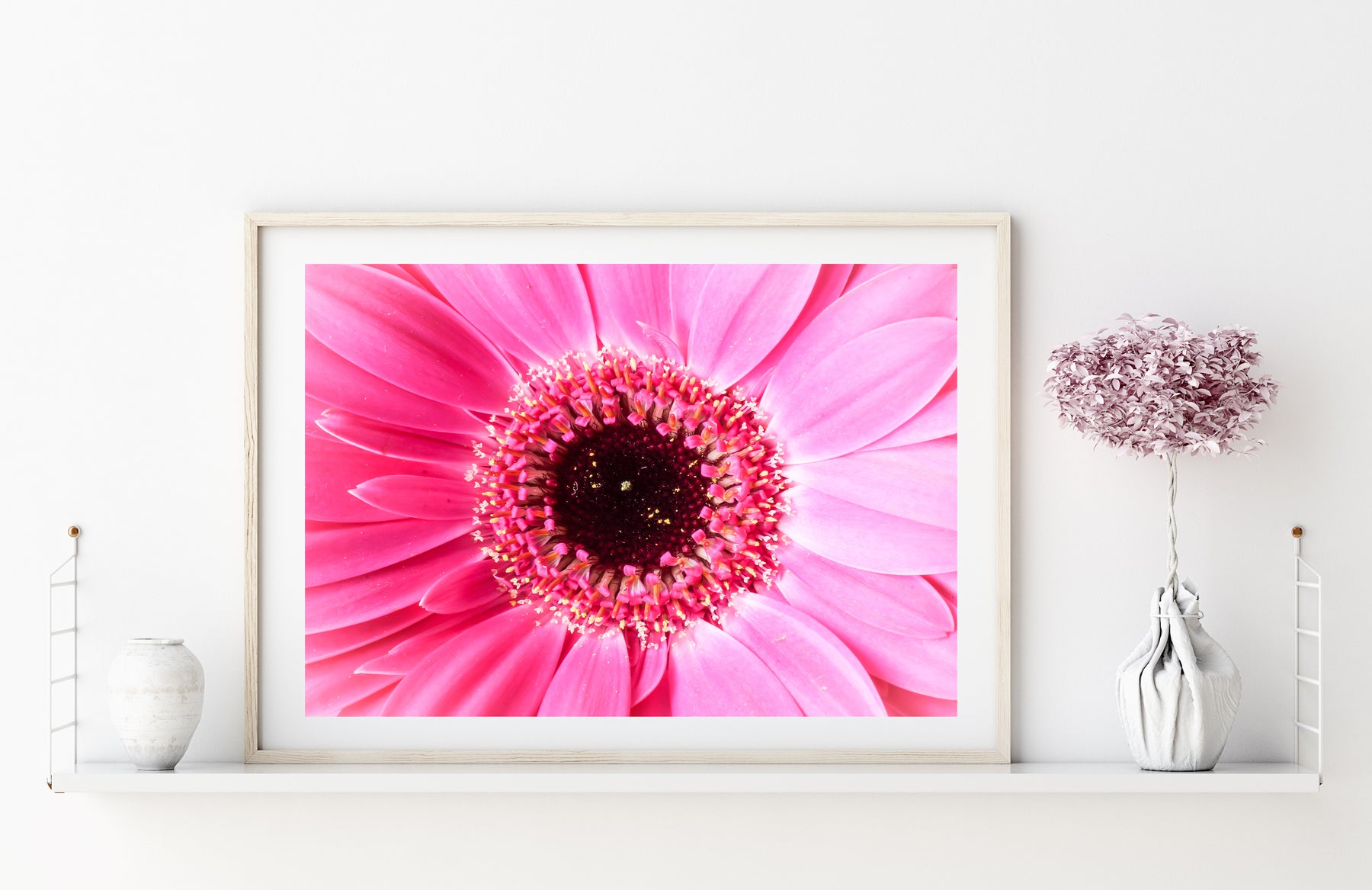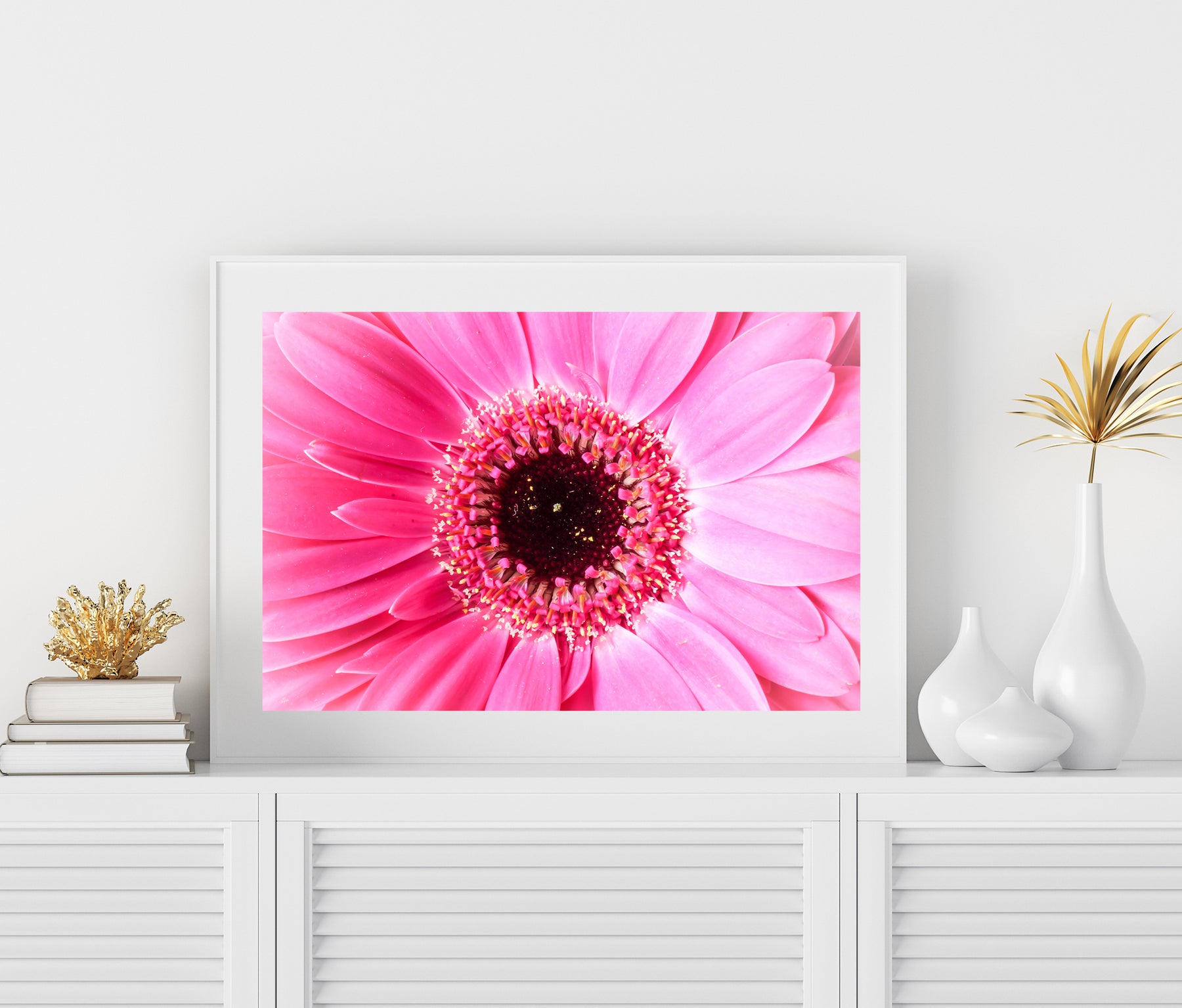 Step into the world of botanical beauty with this stunning pink Gerbera fine art print. The Gerbera, a member of the daisy family, radiates warmth and vibrancy just like a sunny day. This print captures the essence of this charming flower, bringing its natural allure into your home. Elevate your living space with the delicate yet vibrant energy of this Gerbera, and let its beauty infuse warmth and cheerfulness into your daily life. Experience the magic of nature's artistry with this captivating fine art print that's ready to adorn your walls and enrich your living spaces.