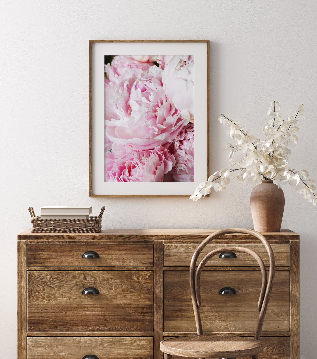 This stunning photography print of tender pink peonies is perfect for adding a touch of romantic charm to your cottage or farmhouse decor. This beautiful art print captures the delicate beauty and elegance of these gorgeous blooms, with their soft pink hues and intricate petals. Hang it on your walls and let it transport you to a serene and peaceful garden oasis. Bring the beauty of the outdoors into your living space with this romantic pink peonies print!