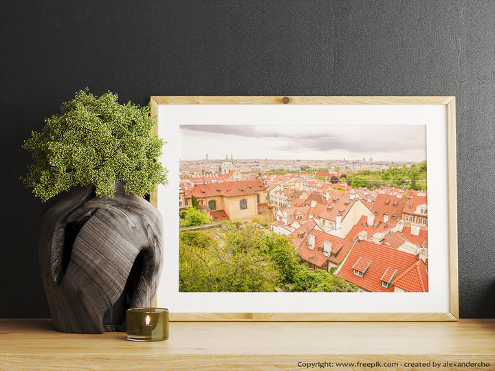 Capture the enchanting beauty of Prague, one of Europe's most stunning cities, with this captivating fine art photography print. Offering an aerial view over the rooftops of the city's old town, this wall art print showcases the architectural marvels, narrow streets, and picturesque buildings that make Prague truly mesmerizing. As the city by the Vlatava river charms its visitors, you can now bring a piece of the Czech Republic's capital home with you or gift it to a friend who has always dreamed of traveling to Prague. Let this travel print transport you to the breathtaking beauty of this remarkable European city from the comfort of your own home.