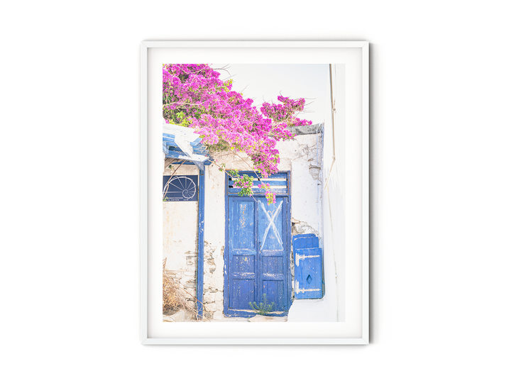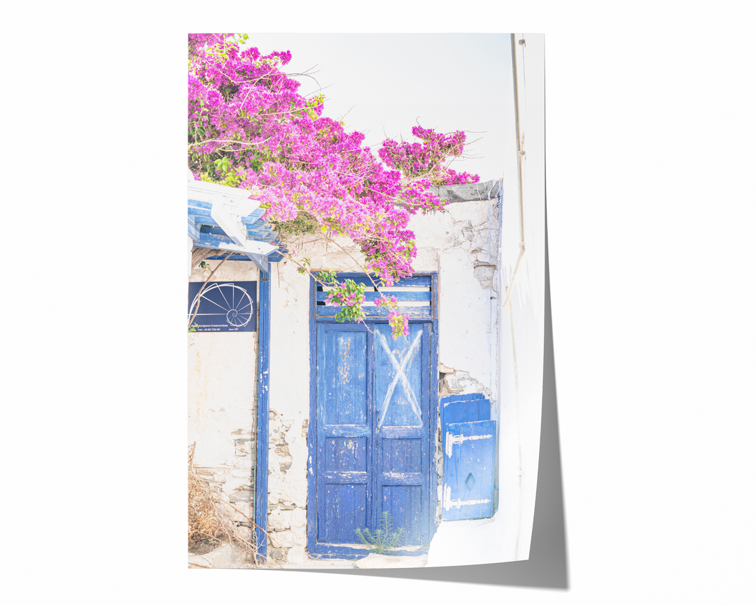 This beautiful travel photography print of a rustic blue door overgrown with a pink bougainvillea captures the essence of a Greek summer. The vibrant pink bloom of the bougainvillea contrast beautifully with the weathered blue of the door. The print is a perfect addition to any room that needs a touch of the Mediterranean, with its warm, sunny colors and relaxed, bohemian vibe. Whether you're an avid traveler, or simply someone who appreciates the beauty of the Greek islands, this print of Paros is sure to bring a touch of magic to your space.