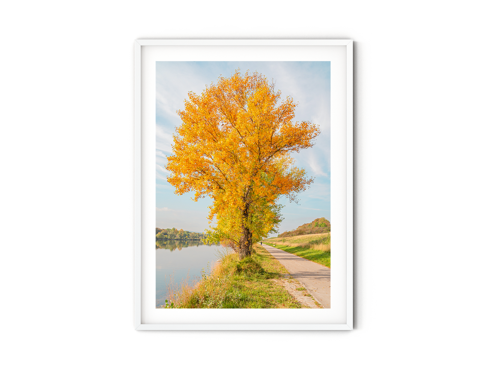 Experience the warmth and beauty of autumn with this wall art print of a golden tree. This captivating photography print showcases the vibrant yellow foliage of fall in a peaceful Indian summer landscape. Perfect for modern farmhouse decor, this print brings the essence of the season into your home. Embrace the cozy and inviting atmosphere of fall, and let the colors of nature transform your space into a haven of tranquility and style.