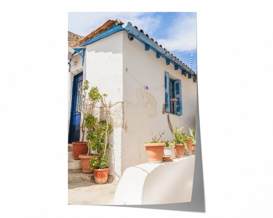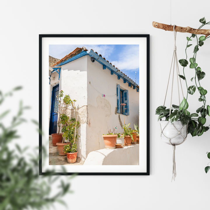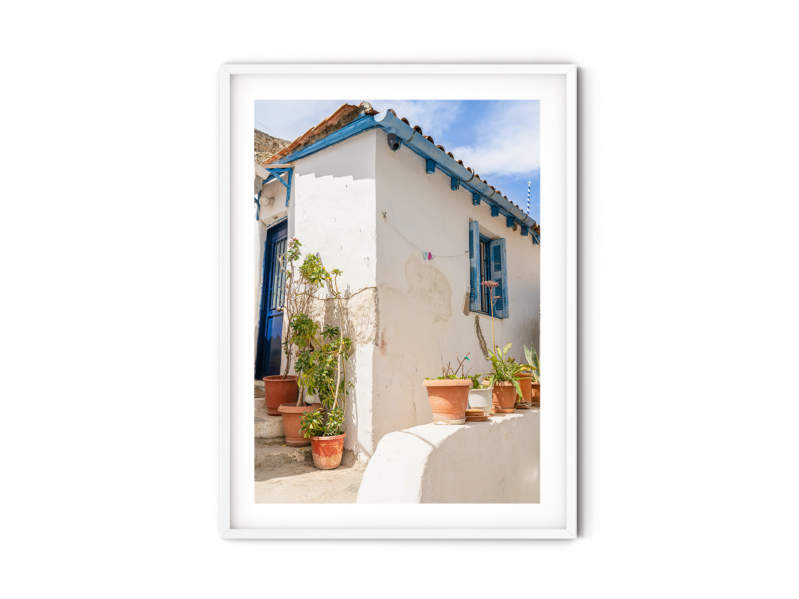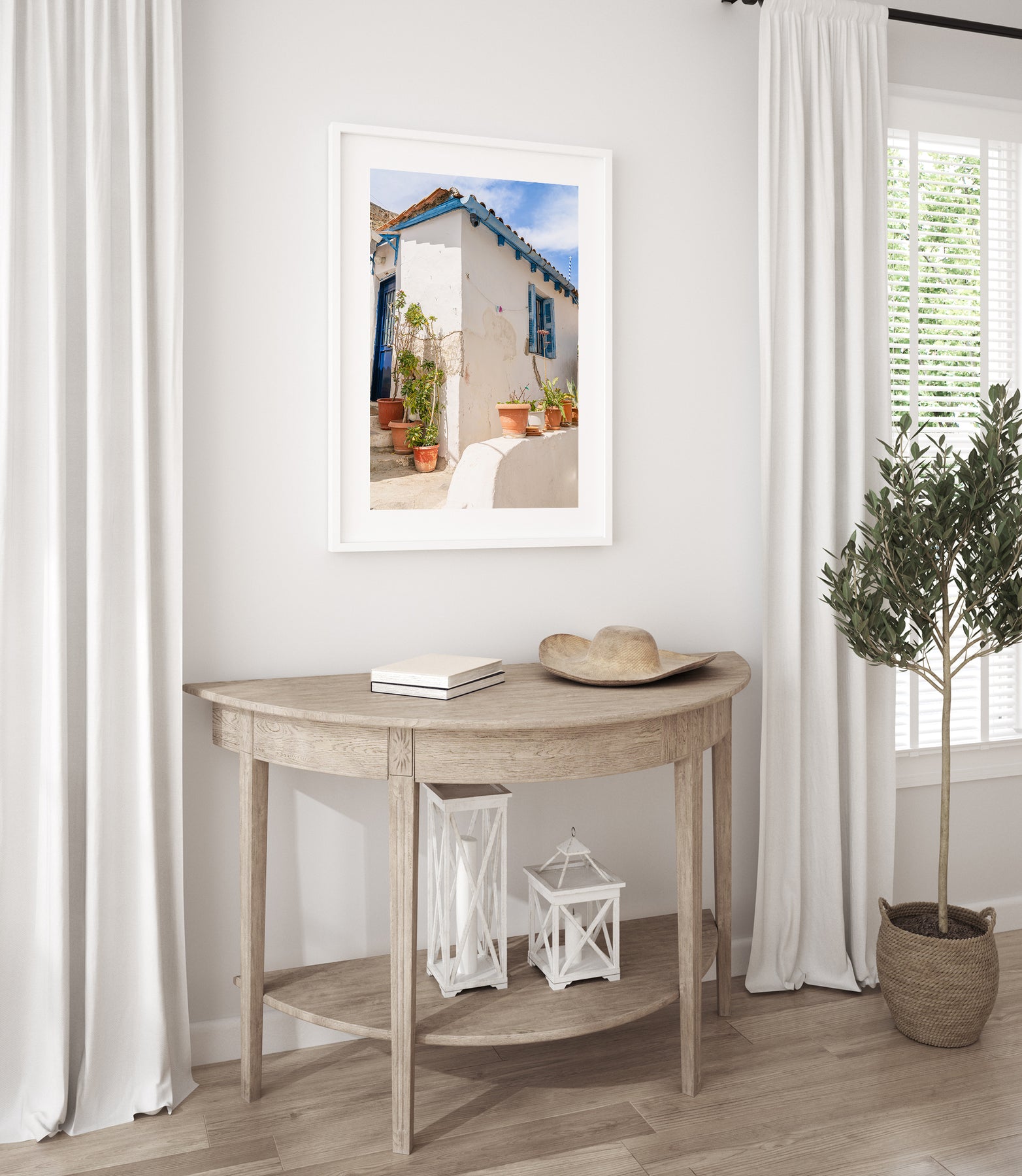 Transport yourself to the idyllic streets of Anafiotika in Athens with this stunning photography print of a traditional blue and white house. Nestled in the heart of Anafiotika, a small neighborhood at the foot of the hill of the Acropolis, this charming house is a true representation of Greek architecture and design. With its whitewashed walls and bright blue accents, this house exudes the magical atmosphere reminiscent of the Cyclades. Whether you're a lover of travel, architecture, or simply drawn to the magic of Greece, this photography print is sure to transport you to the charming streets of Anafiotika and add a touch of Mediterranean charm to your space.