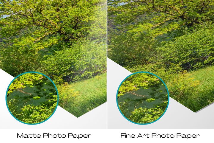 Fine art photo paper prints are printed on Hahnemühle Photo Rag® 308 fine art photo paper (308 gsm). The premium quality fine art prints are made by hand with archival pigmented inks. They impress with over 100 years of color brilliance. The Hahnemühle Photo Rag® 308 is a superior quality branded fine art paper made of 100% cotton with a smooth matte finish that emphasizes every detail.
