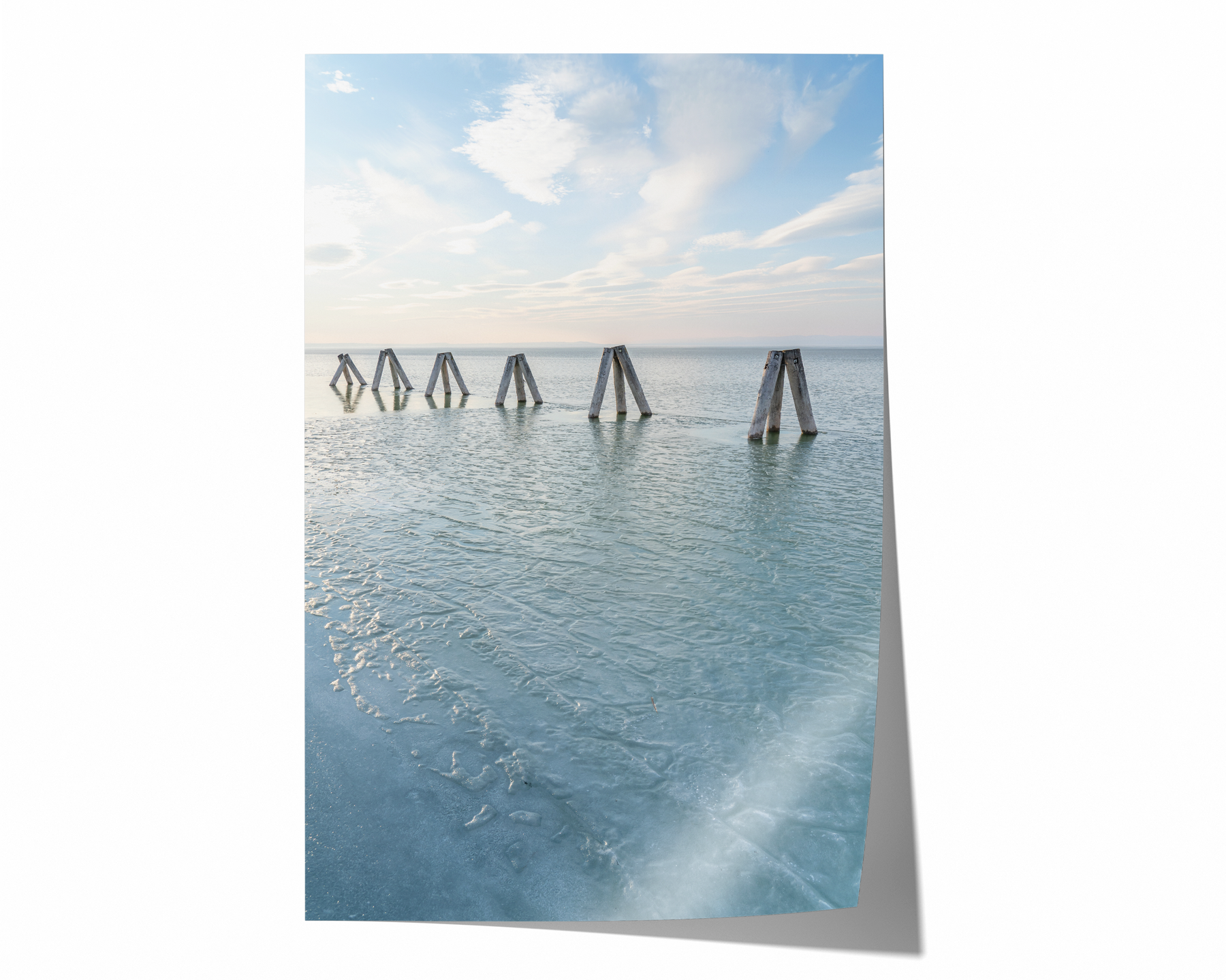 Immerse yourself in the serene beauty of winter with this stunning landscape photograph of a frozen lake. The endless horizon stretching before you creates a feeling of boundless freedom, making it the perfect addition to your home decor for those seeking tranquility and a touch of nature's wonders. Embrace the enchanting atmosphere of the winter season and let this beautiful nature print transform your living space into a peaceful retreat.