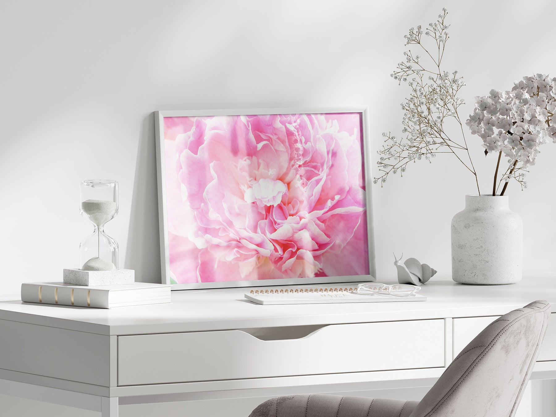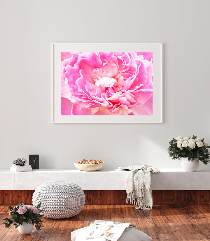 Transform your home decor with the timeless elegance of this fine art flower photography print, featuring the exquisite bloom of a pink peony. This captivating floral print not only adds a touch of natural beauty to your decor but also embodies the peony's symbolism of prosperity and good fortune. Elevate your surroundings with the delicate charm and enduring allure of this pink peony wall art.