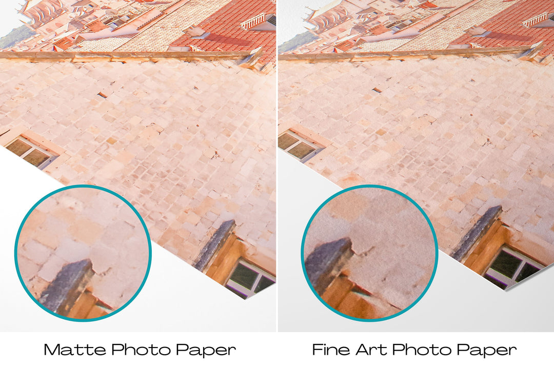 Fine art photo paper prints are printed on Hahnemühle Photo Rag® 308 fine art photo paper (308 gsm). The premium quality fine art prints are made by hand with archival pigmented inks. They impress with over 100 years of color brilliance. The Hahnemühle Photo Rag® 308 is a superior quality branded fine art paper made of 100% cotton with a smooth matte finish that emphasizes every detail.