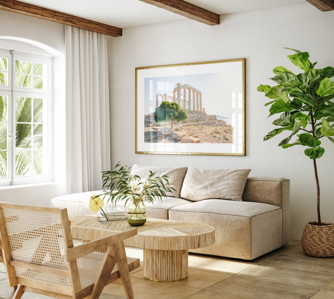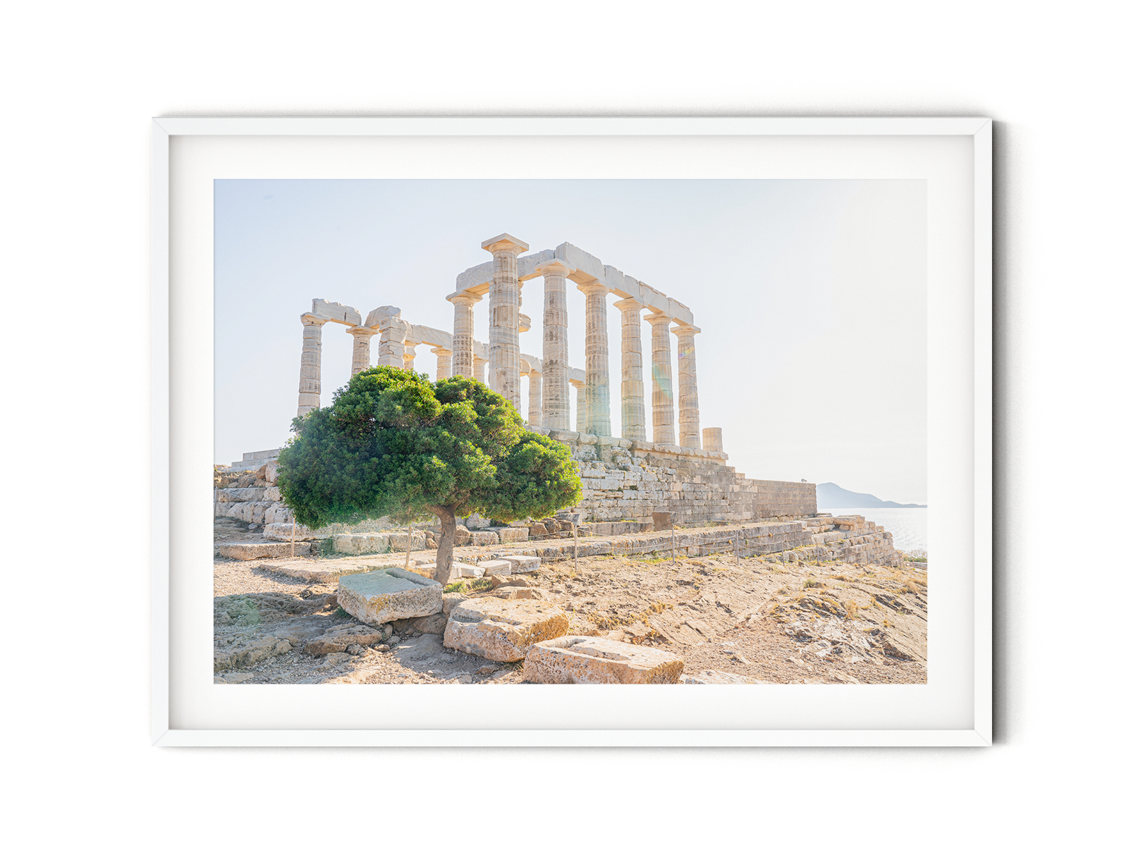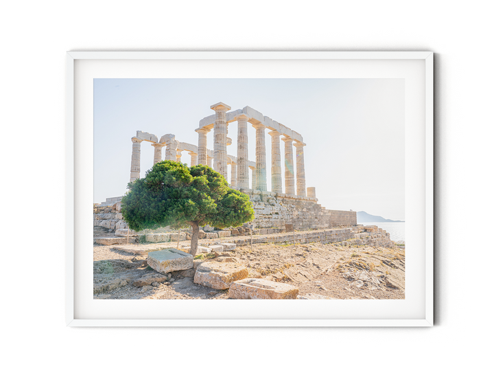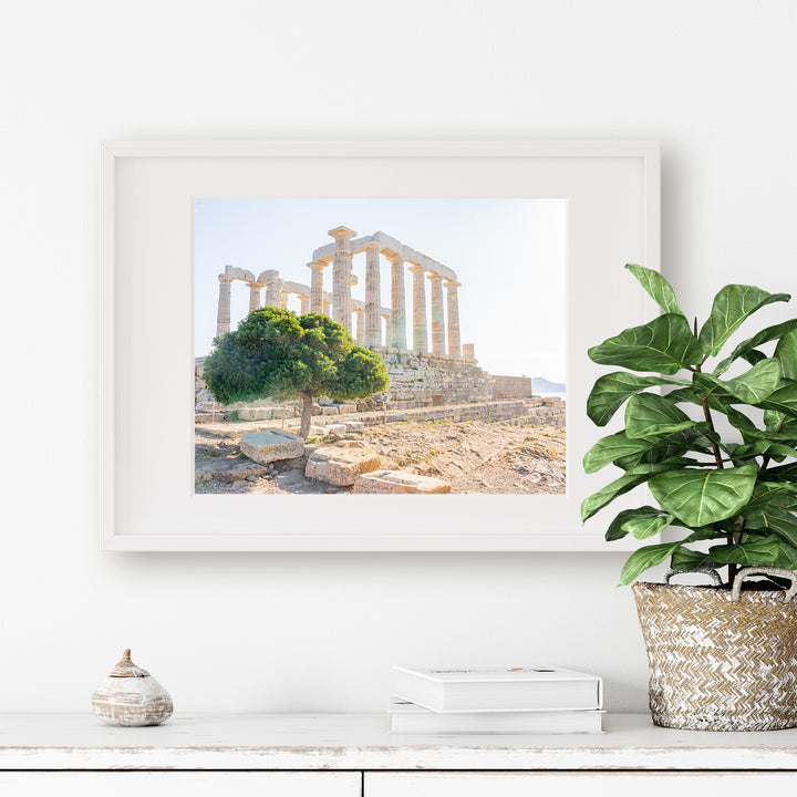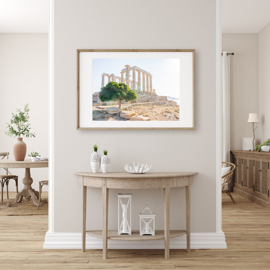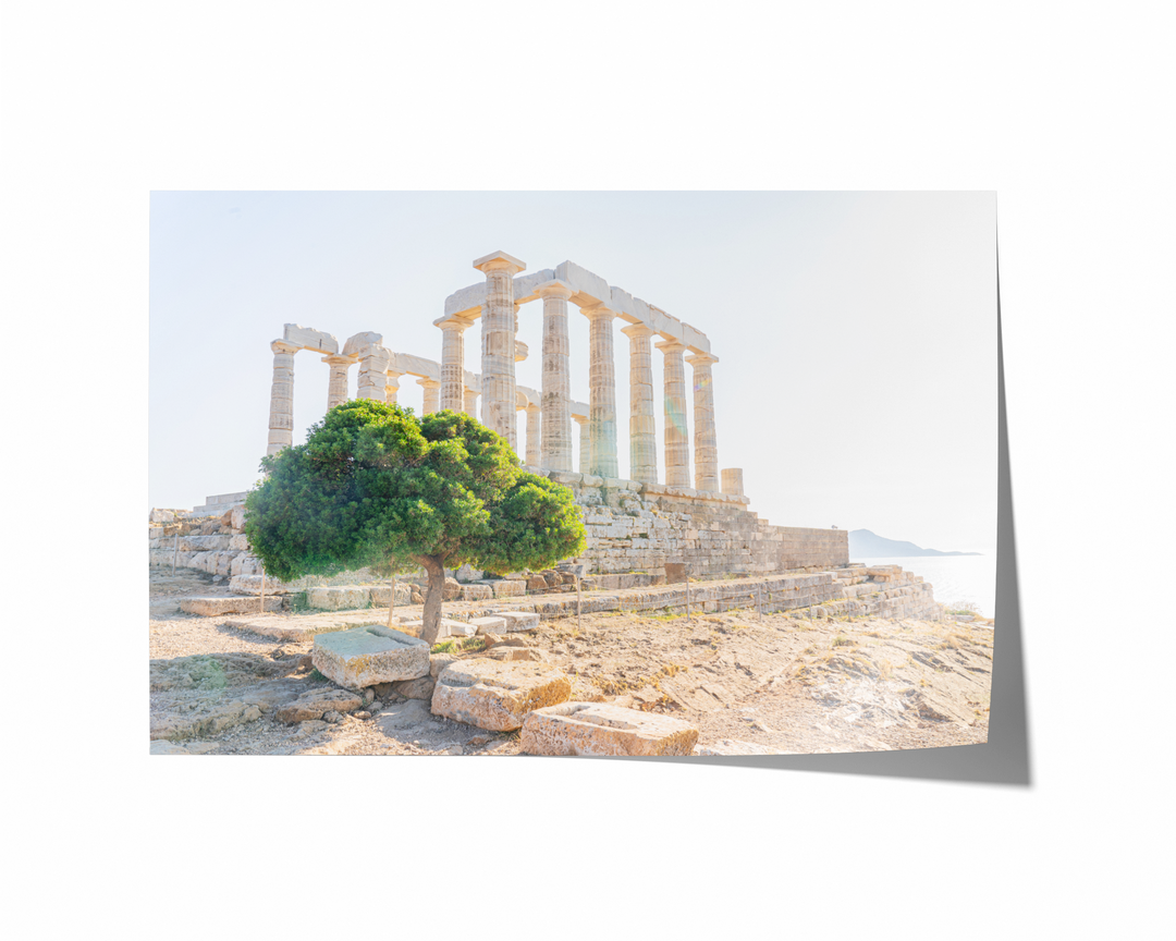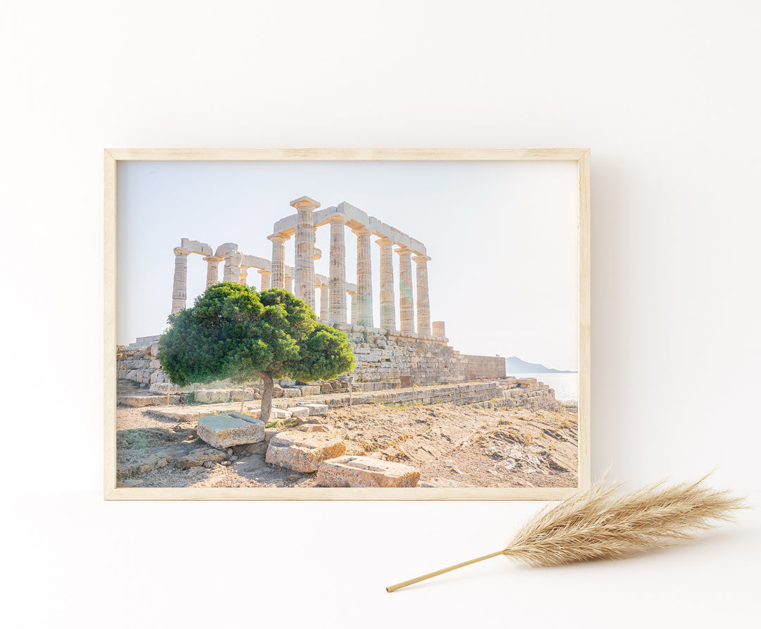 Immerse your space in the ancient allure of Greece with this captivating fine art photography print featuring the Temple of Poseidon at Cape Sounion. The exquisite details and timeless beauty of this iconic landmark are elegantly captured, making it a perfect addition to your travel wall art collection. Elevate your home decor with the spirit of classical Greece, as the warm tones and intricate Ancient Greek architecture transport you to a world of myth and legend. Transform your space into a sanctuary of sophistication and cultural appreciation with this fine art print that pays homage to the grandeur of the Temple of Poseidon