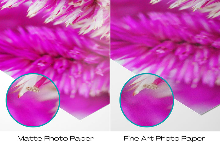 Fine art photo paper prints are printed on Hahnemühle Photo Rag® 308 fine art photo paper (308 gsm). The premium quality fine art prints are made by hand with archival pigmented inks. They impress with over 100 years of color brilliance. The Hahnemühle Photo Rag® 308 is a superior quality branded fine art paper made of 100% cotton with a smooth matte finish that emphasizes every detail.