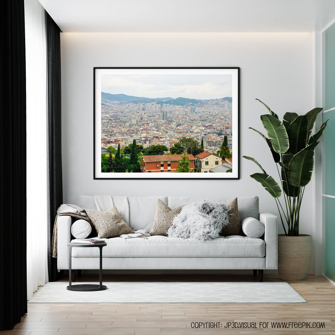 This stunning travel photography print that shows the aerial view of Barcelona. As the capital of Catalonia, Barcelona is renowned for its rich cultural heritage and stunning architecture. With its neutral color palette and elegant design, this travel poster is the perfect addition to any living room or office decor. Whether you're a Barcelona lover or simply appreciate the city's unique charm, this photography print is an excellent way to bring a piece of the city into your home. It's also a wonderful gift idea for anyone who has a passion for travel or a love for beautiful art.