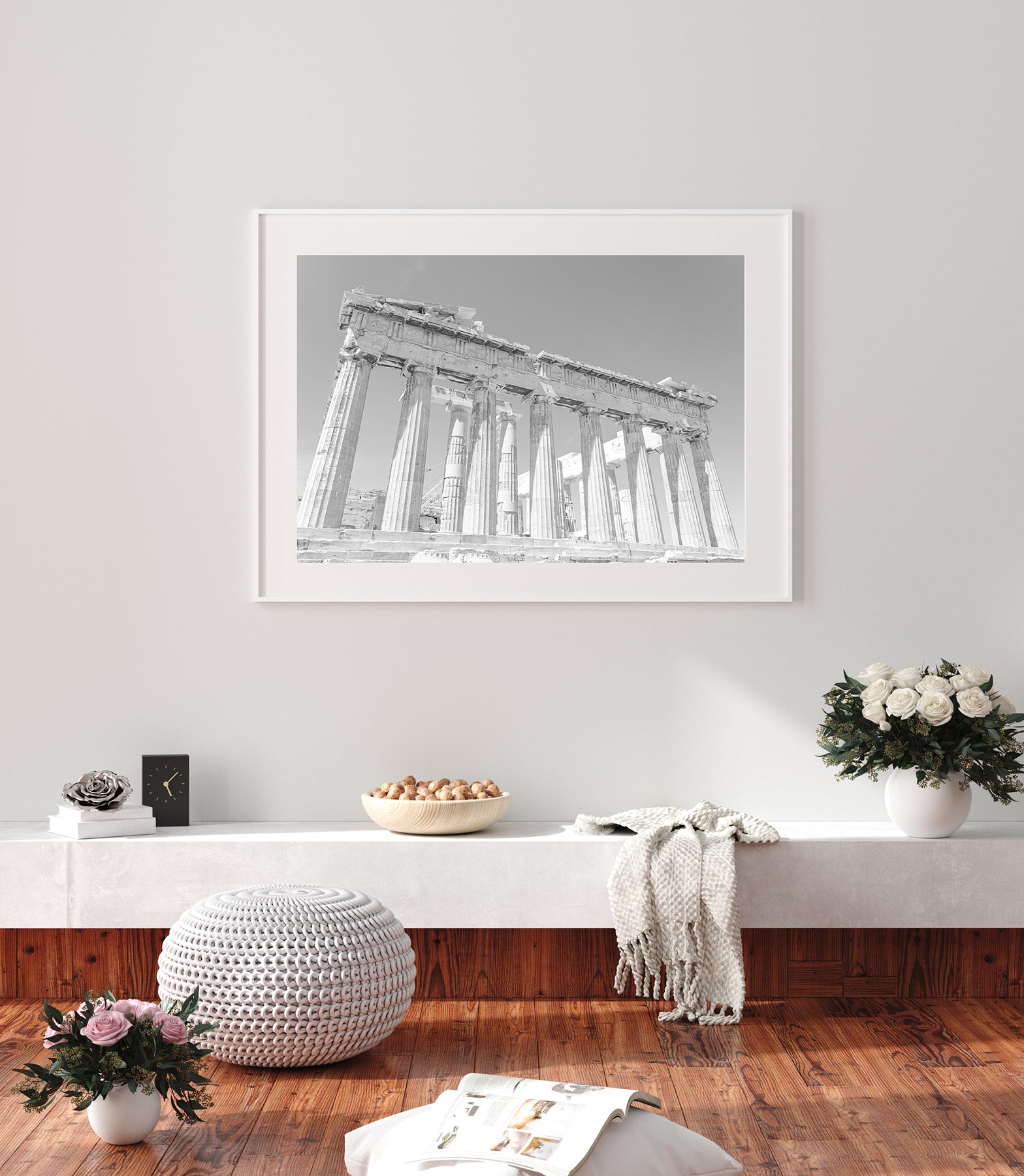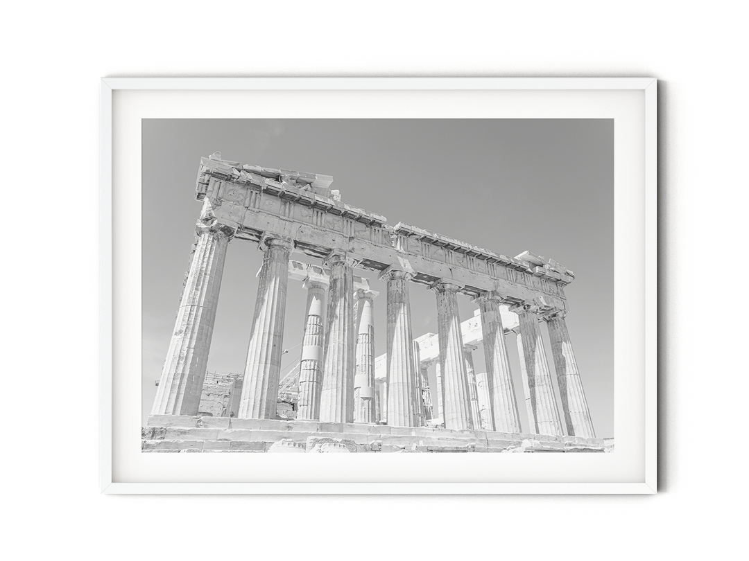 Unveil the timeless beauty of the Parthenon temple at the Acropolis in Athens with this captivating black and white fine art photography print. This iconic symbol of Ancient Greek architecture stands proudly, its grandeur and history captured in every shadow and line. Bring the spirit of Greece's rich heritage to your space, where the Parthenon's ageless elegance will forever inspire.