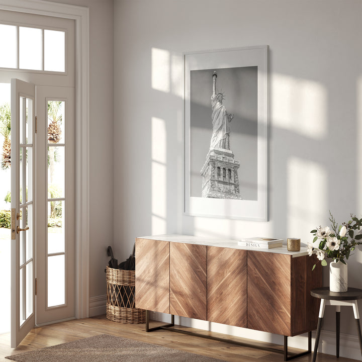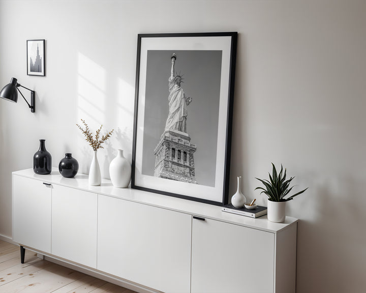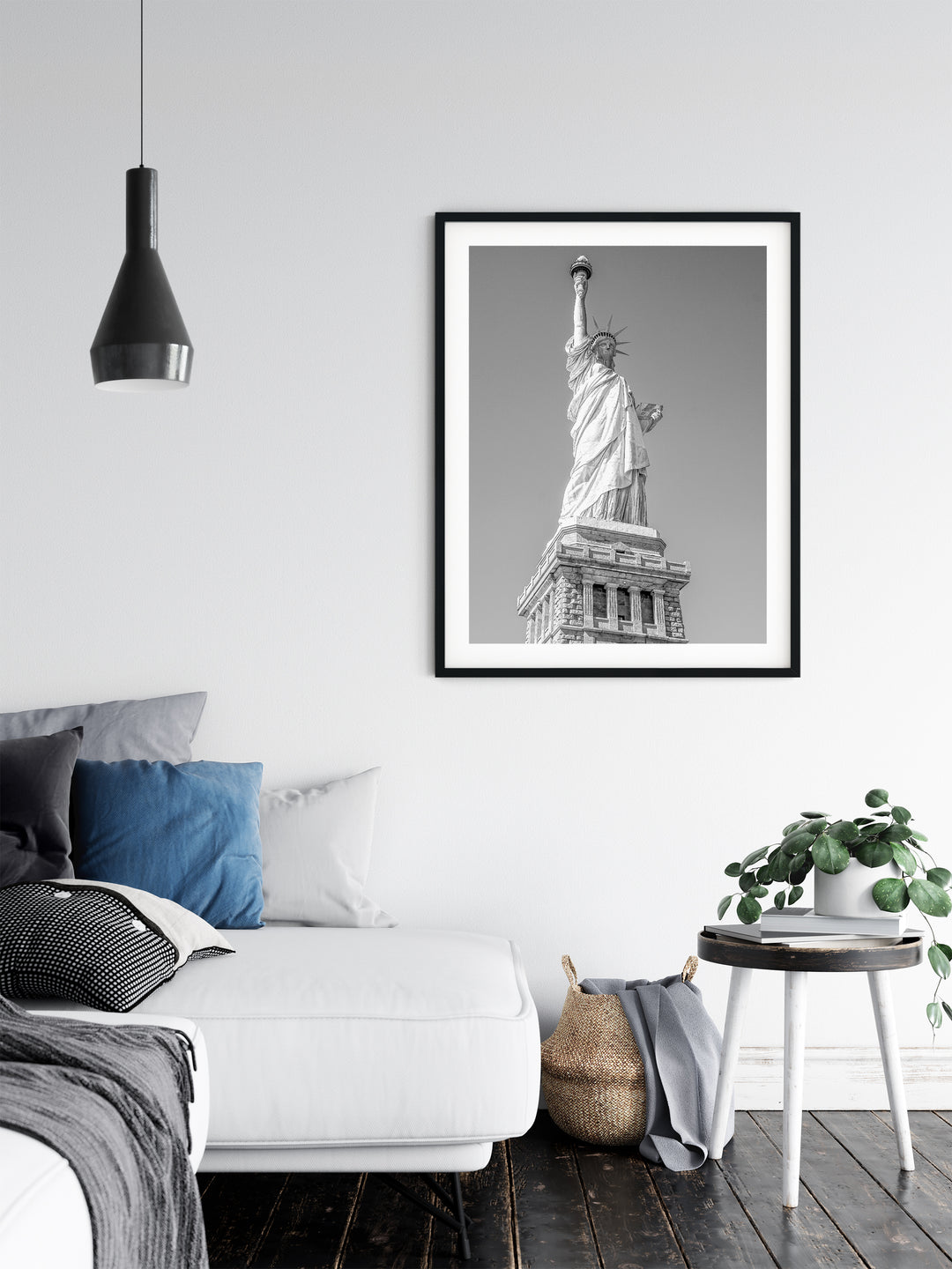 Experience the awe-inspiring beauty of the Statue of Liberty with this stunning black and white photography print. This captivating fine art print captures the iconic statue against a clear sky. The timeless black and white tones add a touch of elegance, highlighting the intricate details of this famous monument. Whether you love the Big Apple or simply appreciate iconic landmarks, this print will bring a sense of grandeur and sophistication to any space.