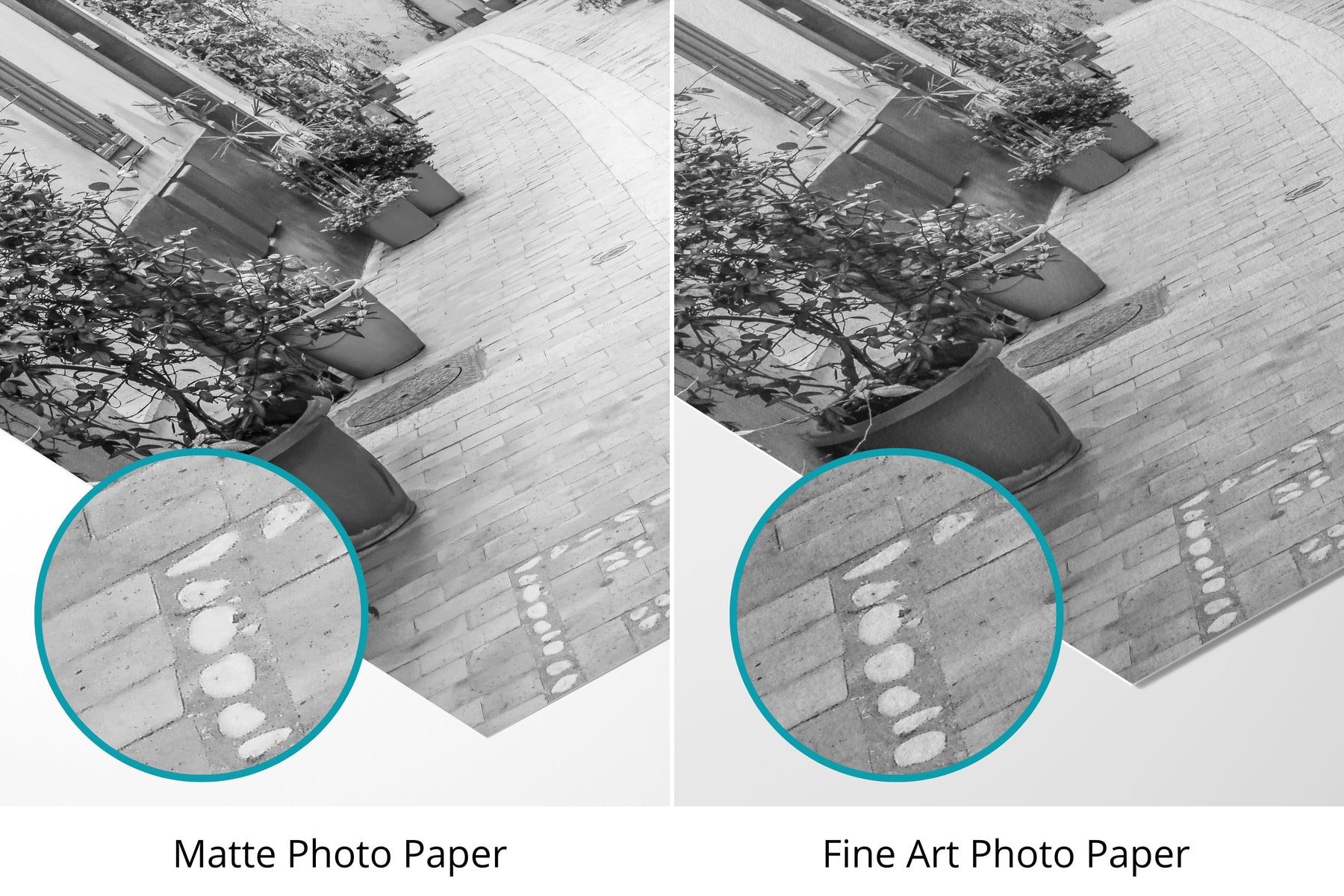 Fine art photo paper prints are printed on Hahnemühle Photo Rag® 308 fine art photo paper (308 gsm). The premium quality fine art prints are made by hand with archival pigmented inks. They impress with over 100 years of color brilliance. The Hahnemühle Photo Rag® 308 is a superior quality branded fine art paper made of 100% cotton with a smooth matte finish that emphasizes every detail.