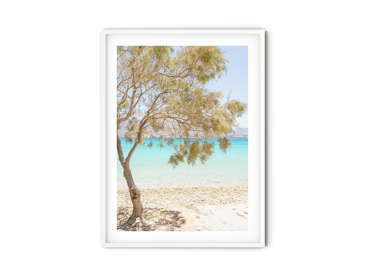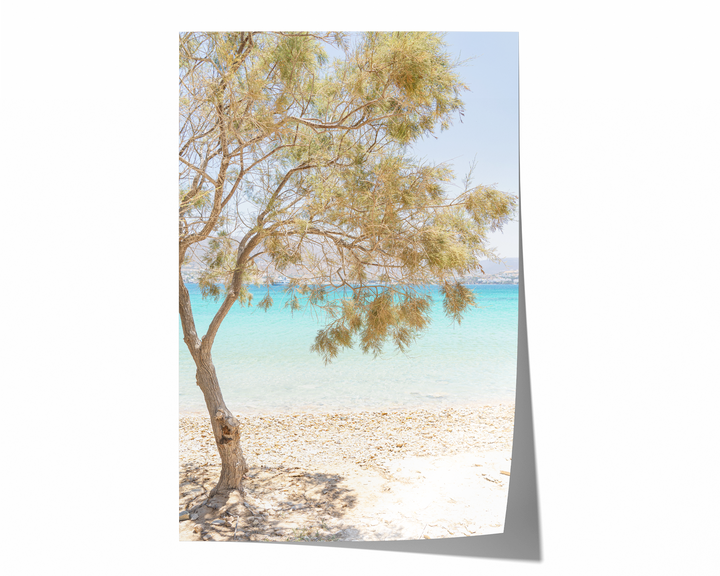 Bring the beauty of the Greek islands into your home with this stunning coastal photography print. This pine tree on a stunning beach in Paros, overlooking the crystalclear turquoise waters of the Aegean Sea captures the essence of Greek summer. This coastal print will bring a touch of the Aegean Sea into your home and let you enjoy the beach all year long!
