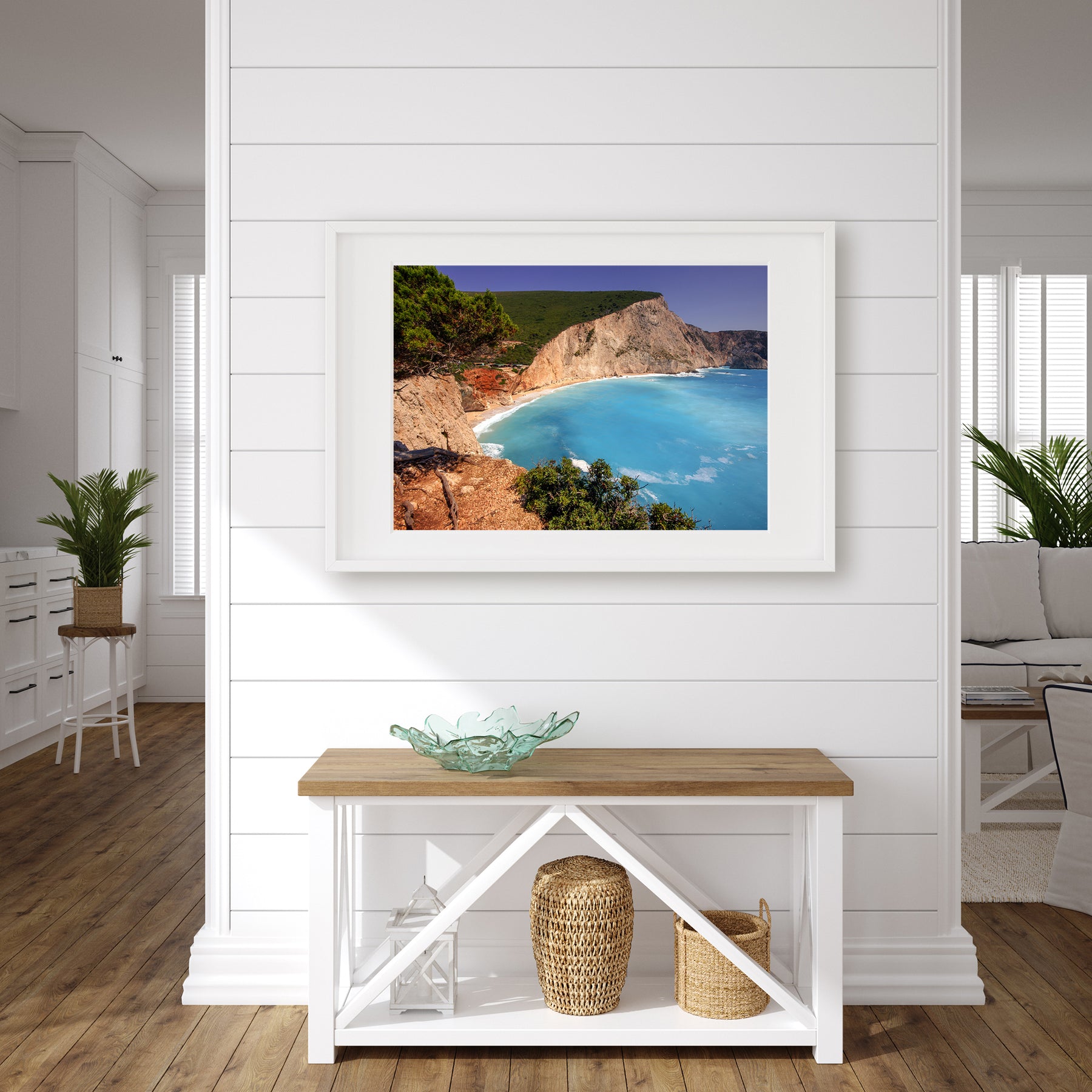 Bring the Greek summer into your home with this stunning beach wall art print of Porto Katsiki. Porto Katsiki on the Greek island of Lefkada is one of the most beautiful beaches in the world. At the foot of steep cliffs you can look out over the seemingly endless teal Mediterranean Sea while listening to the sound of the waves. The beauty of the coastal landscape is simply breathtaking. Bring a piece of Greece into your home with this fine art photography! The wall art print is also a great addition to your modern coastal decor.