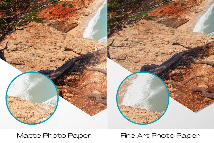 Fine art photo paper prints are printed on Hahnemühle Photo Rag® 308 fine art photo paper (308 gsm). The premium quality fine art prints are made by hand with archival pigmented inks. They impress with over 100 years of color brilliance. The Hahnemühle Photo Rag® 308 is a superior quality branded fine art paper made of 100% cotton with a smooth matte finish that emphasizes every detail.