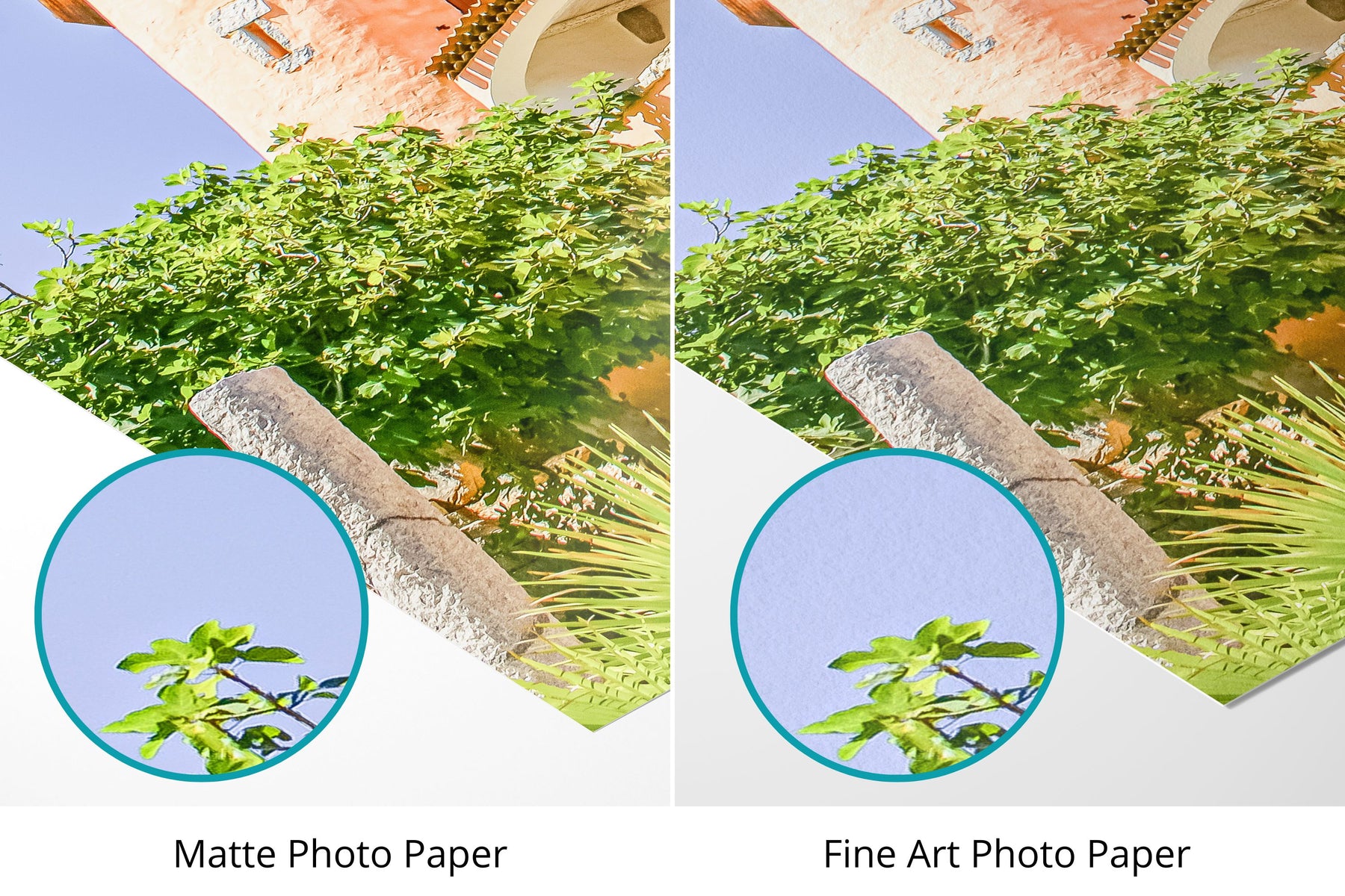 Fine art photo paper prints are printed on Hahnemühle Photo Rag® 308 fine art photo paper (308 gsm). The premium quality fine art prints are made by hand with archival pigmented inks. They impress with over 100 years of color brilliance. The Hahnemühle Photo Rag® 308 is a superior quality branded fine art paper made of 100% cotton with a smooth matte finish that emphasizes every detail.