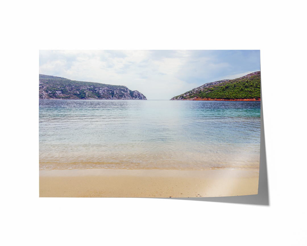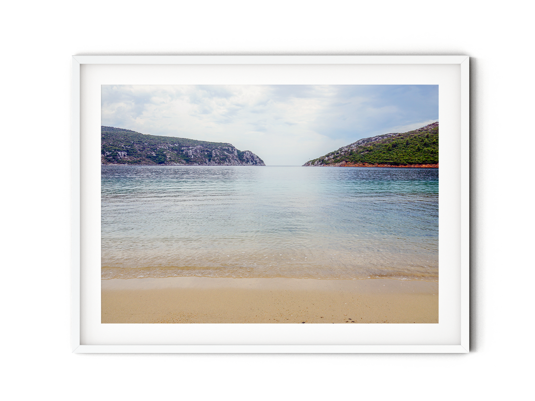 Capture the serene beauty of Porto Koufo, a captivating natural harbor nestled on the Greek peninsula of Halkidiki, with this atmospheric beach print. The name "Porto Koufo" means "deaf harbor" due to the surrounding mountains that shield the port from the sound of the sea. Porto Koufo exudes a unique tranquility. This coastal photography print perfectly encapsulates the calm atmosphere, transporting you to the peaceful shores of Greece. Bring a touch of Greece's coastal allure into your home with this stunning beach print, allowing the beauty and serenity of this stunning beach to serve as a constant reminder of the wonders of nature.