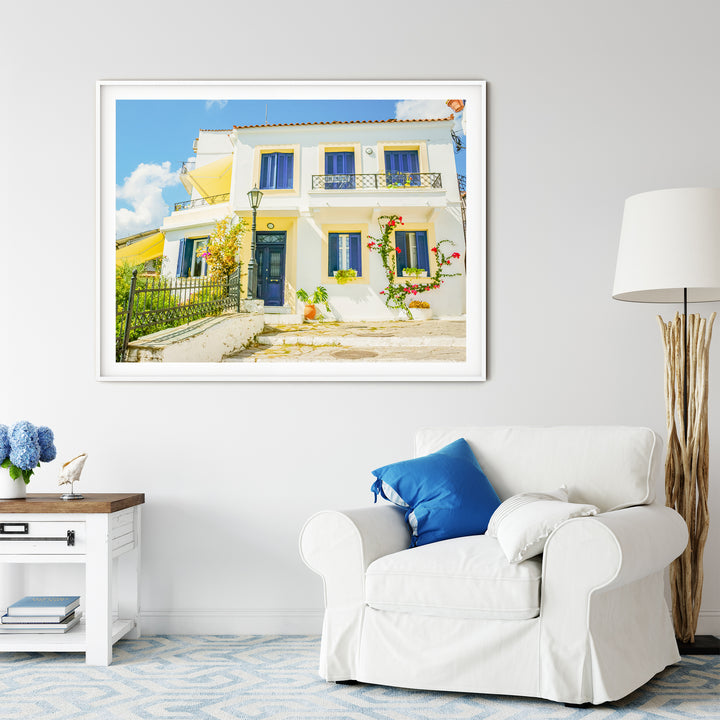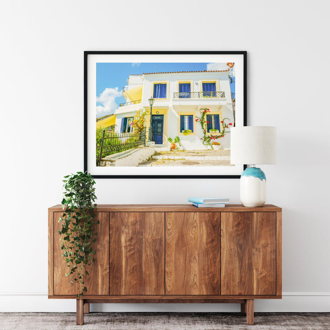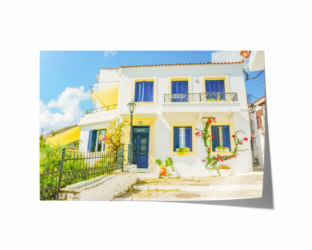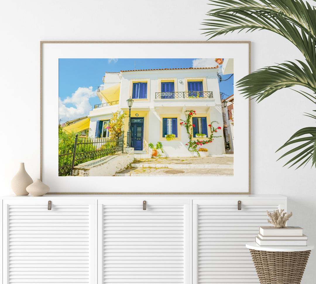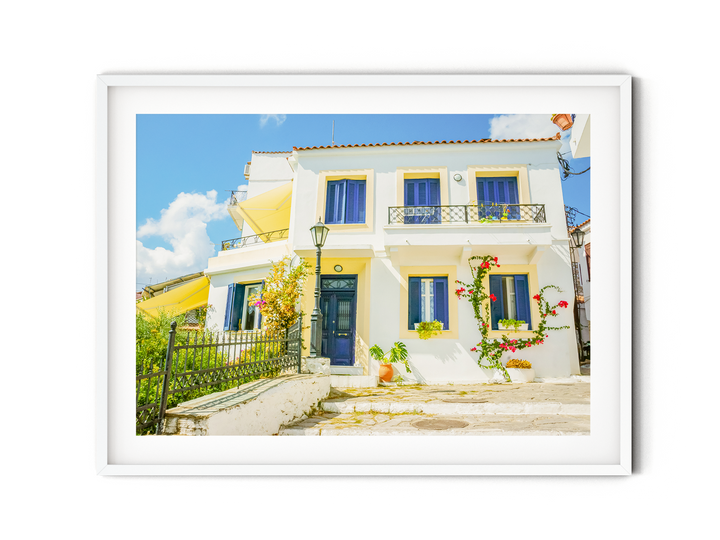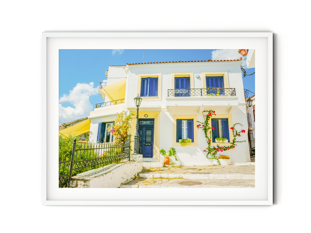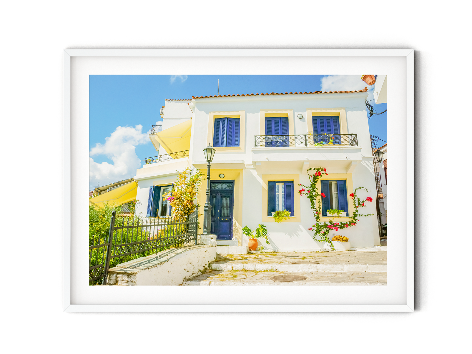 Capture the atmosphere of Skiathos, a captivating Greek island, with this stunning fine art photography print. Known for its picturesque villages and charming white houses adorned with blue shutters, Skiathos offers a truly enchanting experience. This travel print invites you to embrace the mesmerizing Mediterranean charm. Let this Greece poster bring the beauty of Skiathos into your home and immerse yourself in the tranquility and architectural splendor of the idyllic island.
