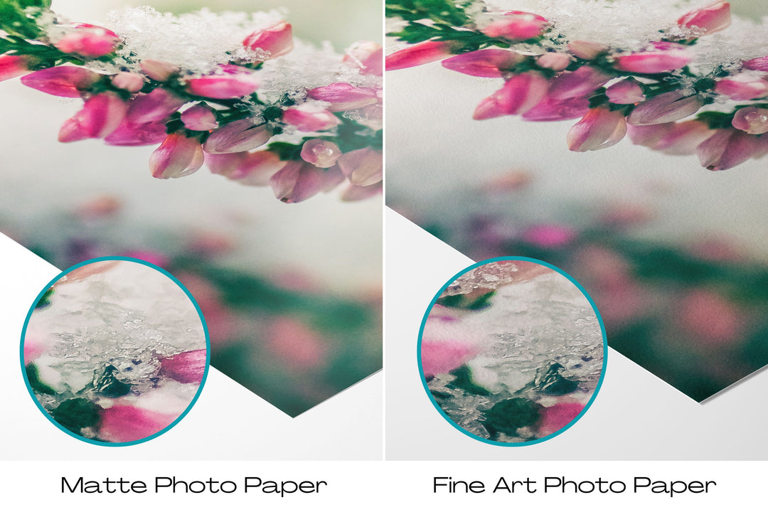 Fine art photo paper prints are printed on Hahnemühle Photo Rag® 308 fine art photo paper (308 gsm). The premium quality fine art prints are made by hand with archival pigmented inks. They impress with over 100 years of color brilliance. The Hahnemühle Photo Rag® 308 is a superior quality branded fine art paper made of 100% cotton with a smooth matte finish that emphasizes every detail.